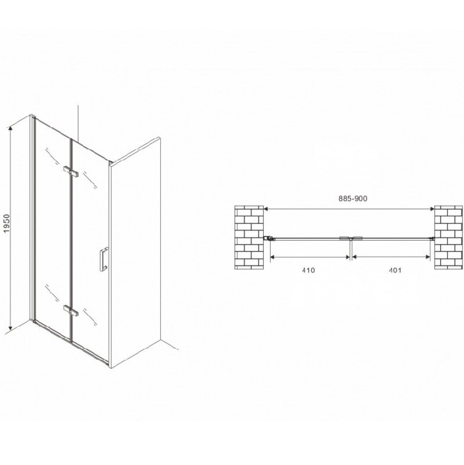 Душевая дверь Abber Zart, 90 х 195 см, стекло прозрачное, профиль хром, AG08090P