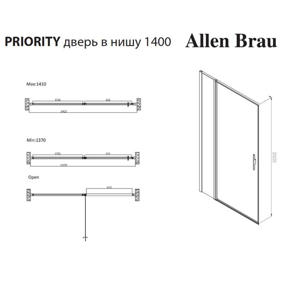 Душевая дверь Allen Brau Priority, 3.31034.00, 140 см, стекло прозрачное, профиль хром