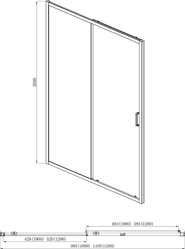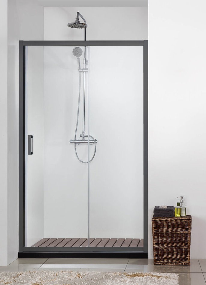 Душевая дверь Aquatek, 120 см, раздвижная, стекло прозрачное, профиль черный, AQ ARI RA 12020BL