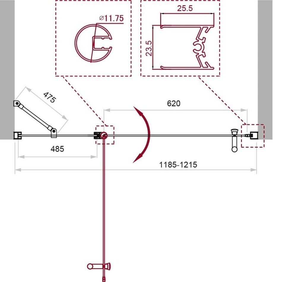 - Регулировка ширины: предусмотрена за счет боковых профилей