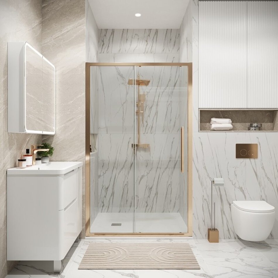Душевая дверь Grossman Cosmo 100.K33.02.110.32.00, 110 см, стекло прозрачное, профиль золото сатин