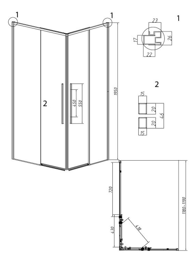 Душевая дверь - 1/2 душевого ограждения. Для создания душевого уголка необходимо заказать две двери.