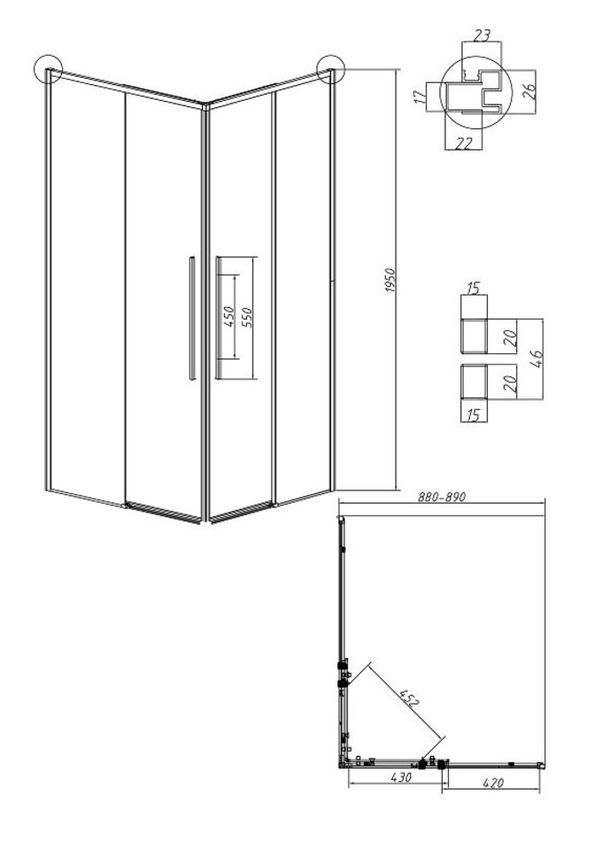Душевая дверь - 1/2 душевого ограждения. Для создания душевого уголка необходимо заказать две двери.