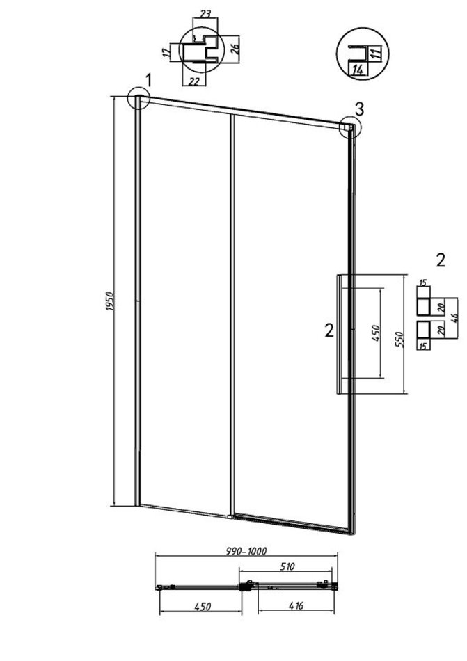 Душевая дверь Grossman Galaxy 100.K33.01.100.42.10, 100 см, стекло тонированное, профиль графит сатин