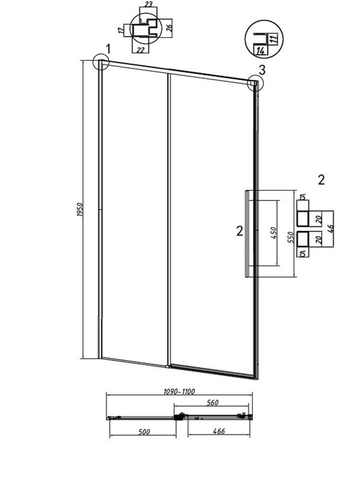 Душевая дверь Grossman Galaxy 100.K33.01.110.10.02, 110 см, стекло шиншилла, профиль хром