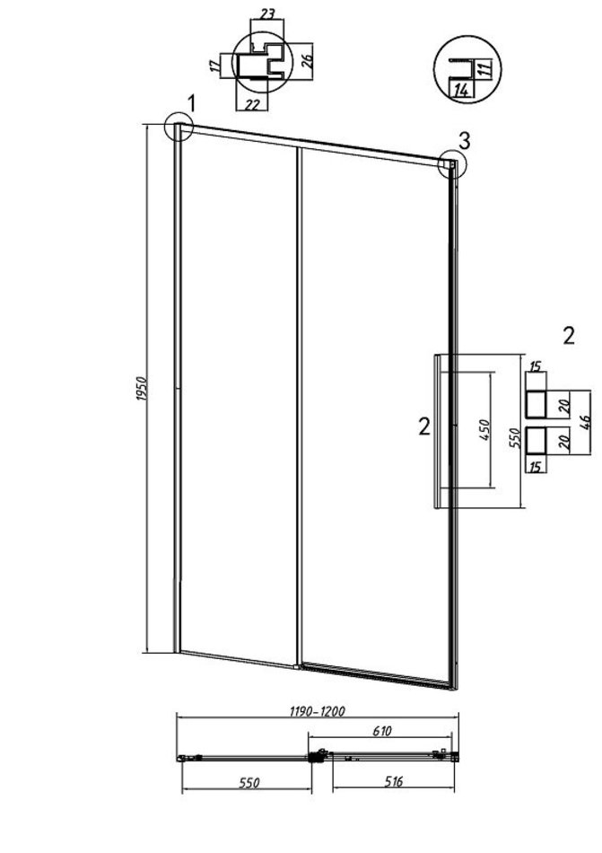 Душевая дверь Grossman Galaxy 100.K33.01.120.42.10, 120 см, стекло тонированное, профиль графит сатин