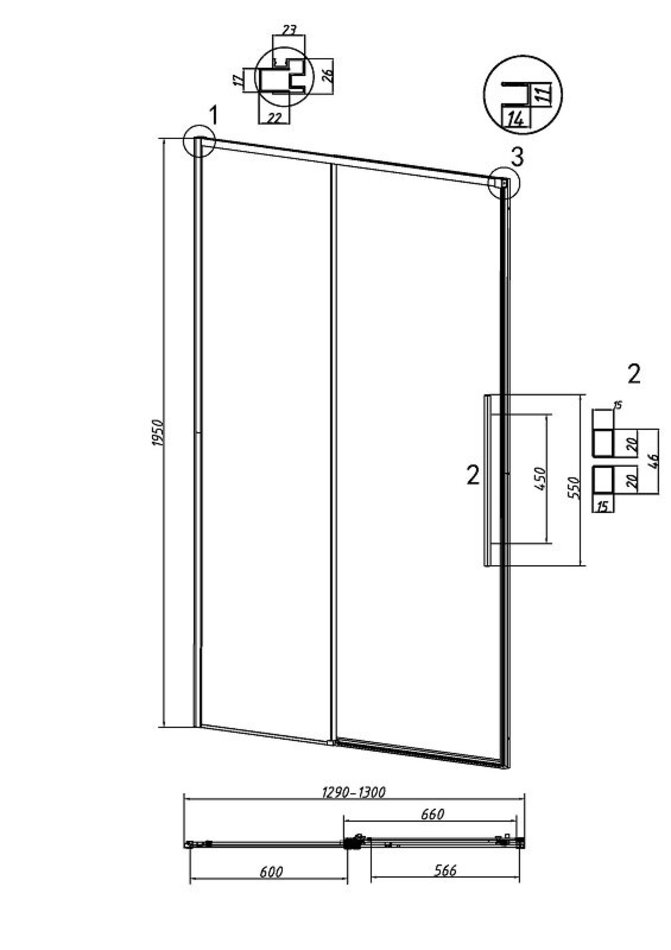 Душевая дверь Grossman Galaxy 100.K33.01.130.42.00, 130 см, стекло прозрачное, профиль графит сатин