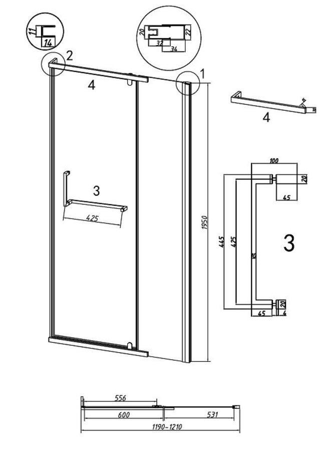 Душевая дверь Grossman Pragma 100.K33.03.120.10.00, 120 см, стекло прозрачное, профиль хром