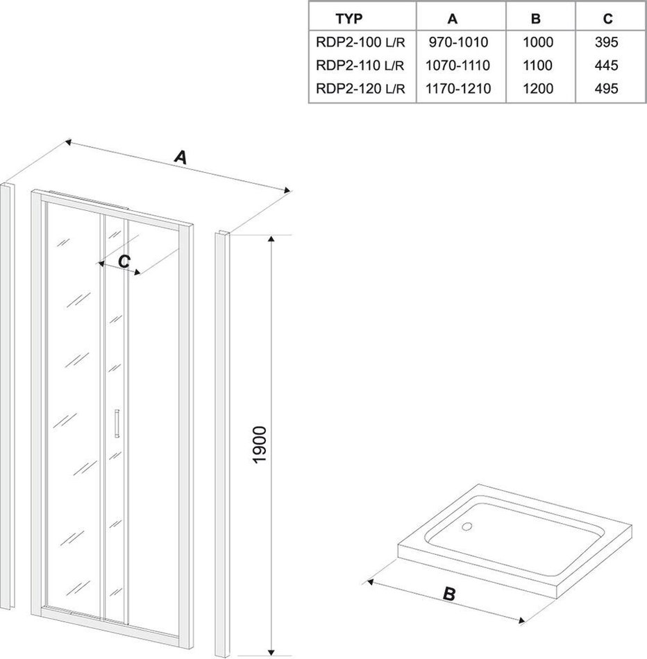 Душевая дверь Ravak NRDP2-100, левая, профиль белый, витраж транспарент, 0NNA010LZ1