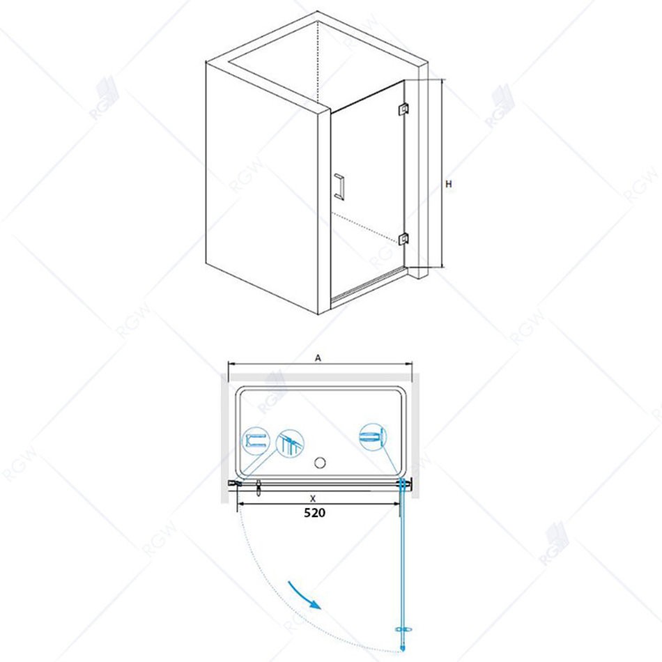 Душевая дверь RGW HO-011B, 350601106-14, 60 х 195 см в нишу, распашная, стекло прозрачное, профиль черный