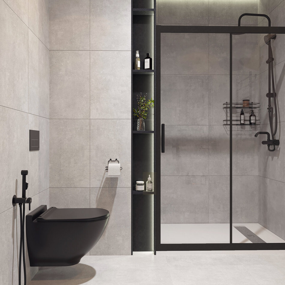 Душевая дверь Stworki Стокгольм DE019D2100200BLK 100 см, раздвижная, профиль черный матовый, стекло прозрачное, 3GW058TTKK000