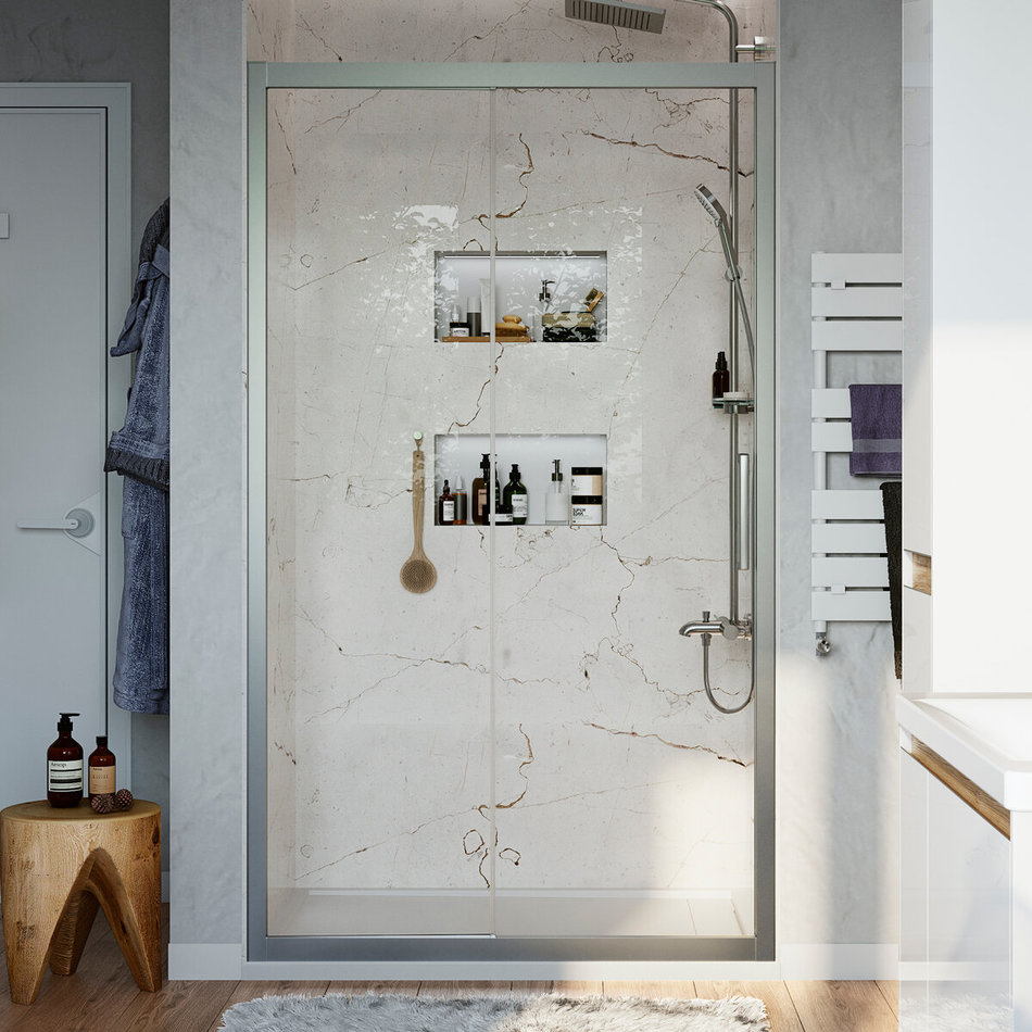 Душевая дверь Stworki Стокгольм DE019D2120200 120 см, раздвижная, профиль хром матовый, стекло прозрачное, 3GW010TTKK000
