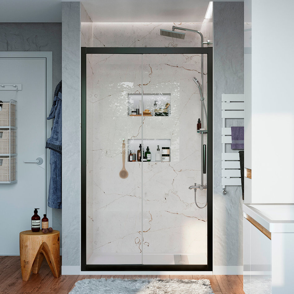 Душевая дверь Stworki Стокгольм DE019D290200 90 см, профиль черный матовый, стекло прозрачное, 3GW207TTKK000