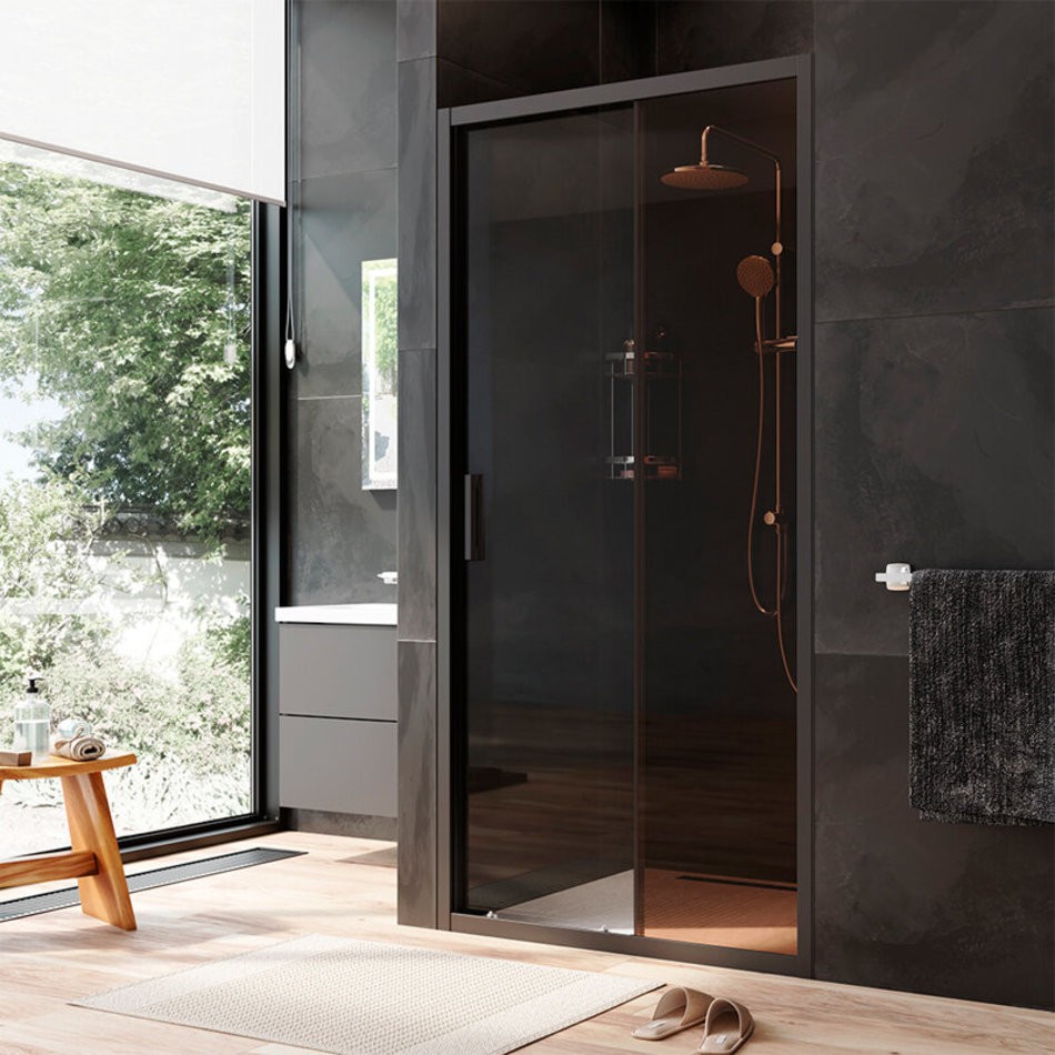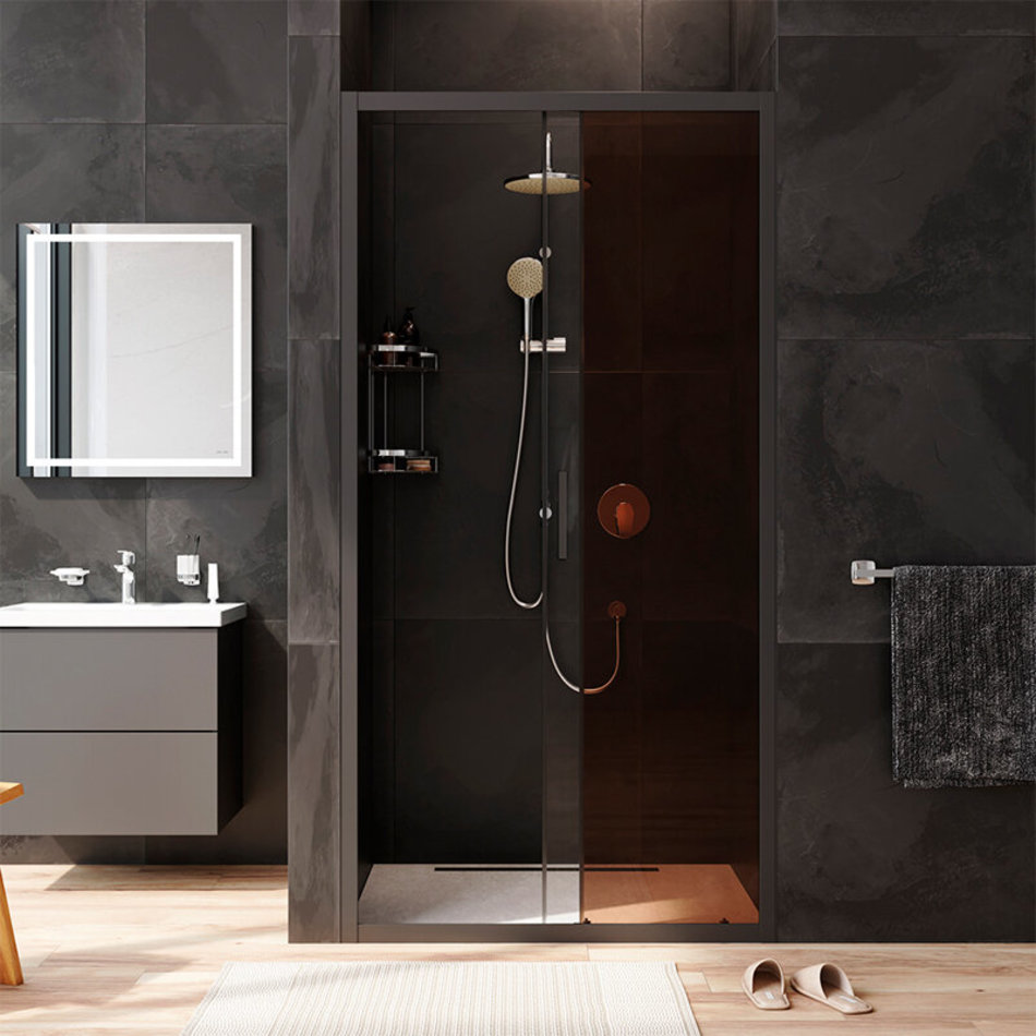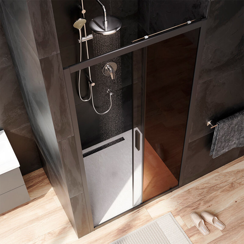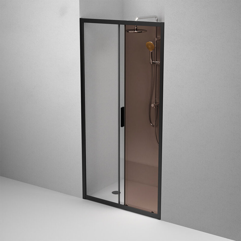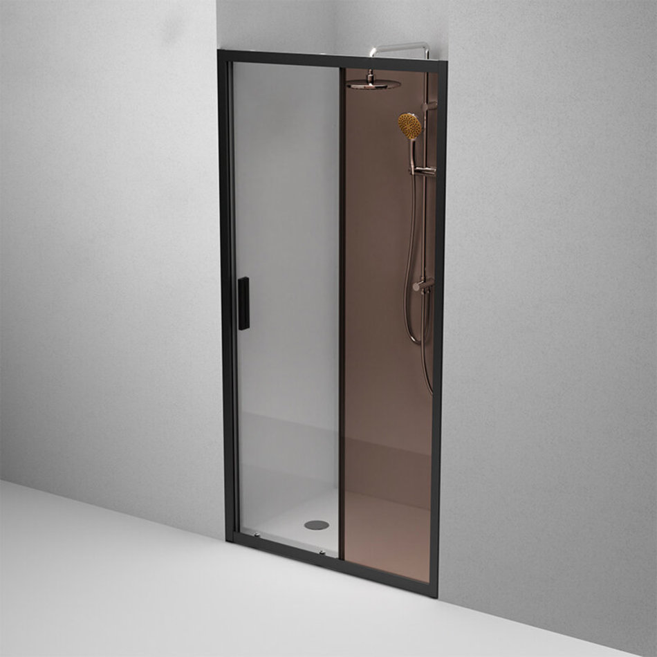 Душевая дверь в нишу Am.Pm Gem Solo 100 х 195 см, раздвижная, стёкла прозрачное и бронзовое, профиль черный матовый, W90G-100-1-195BBr