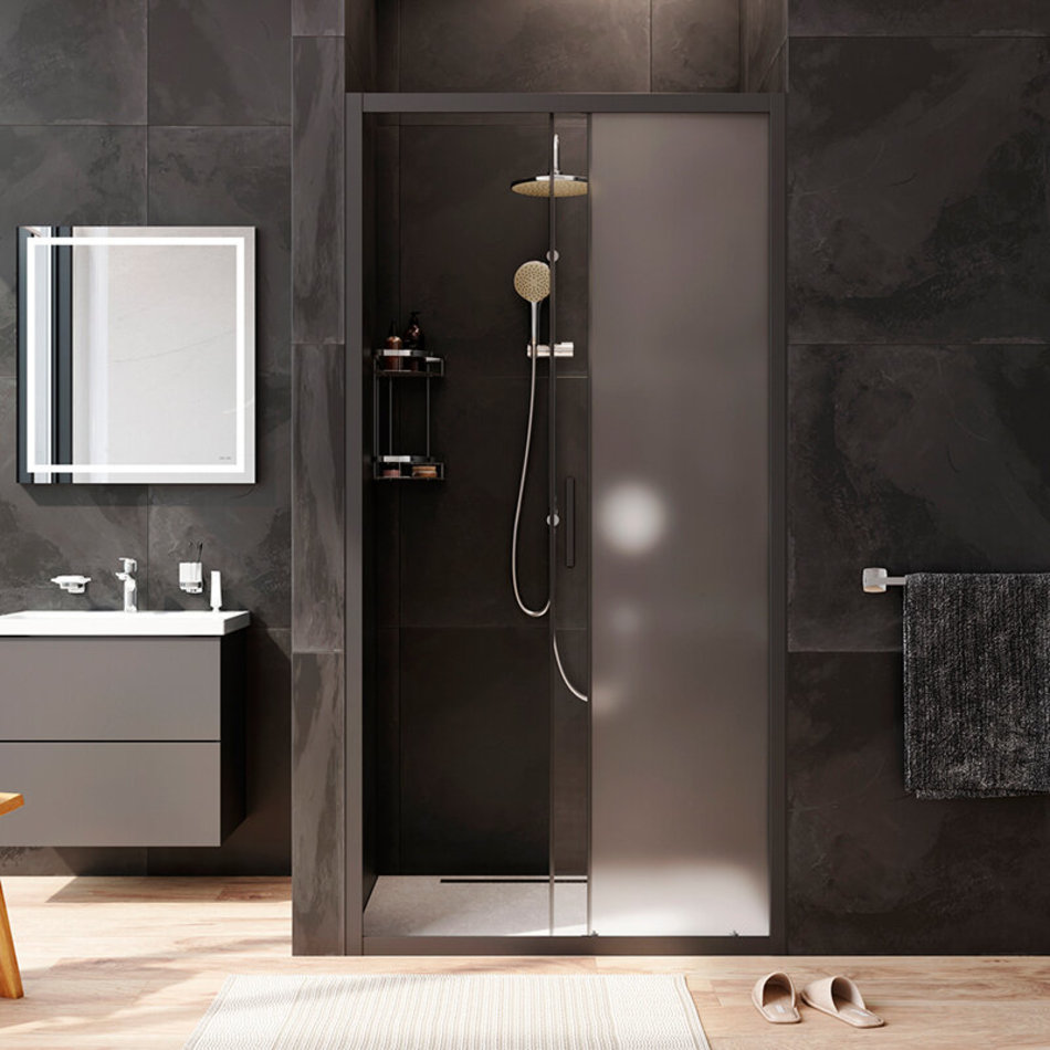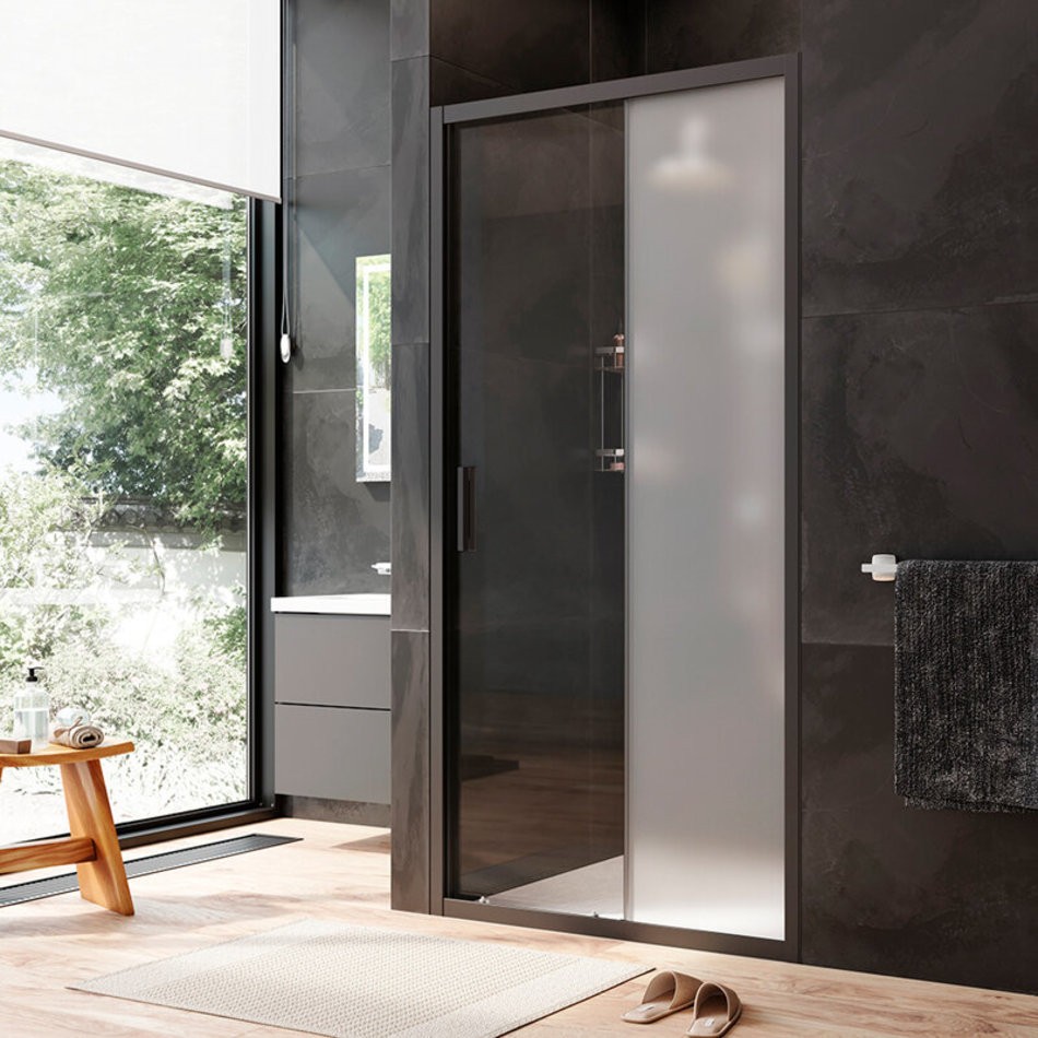 Душевая дверь в нишу Am.Pm Gem Solo 100 х 195 см, раздвижная, стёкла прозрачное и матовое, профиль черный матовый, W90G-100-1-195BM