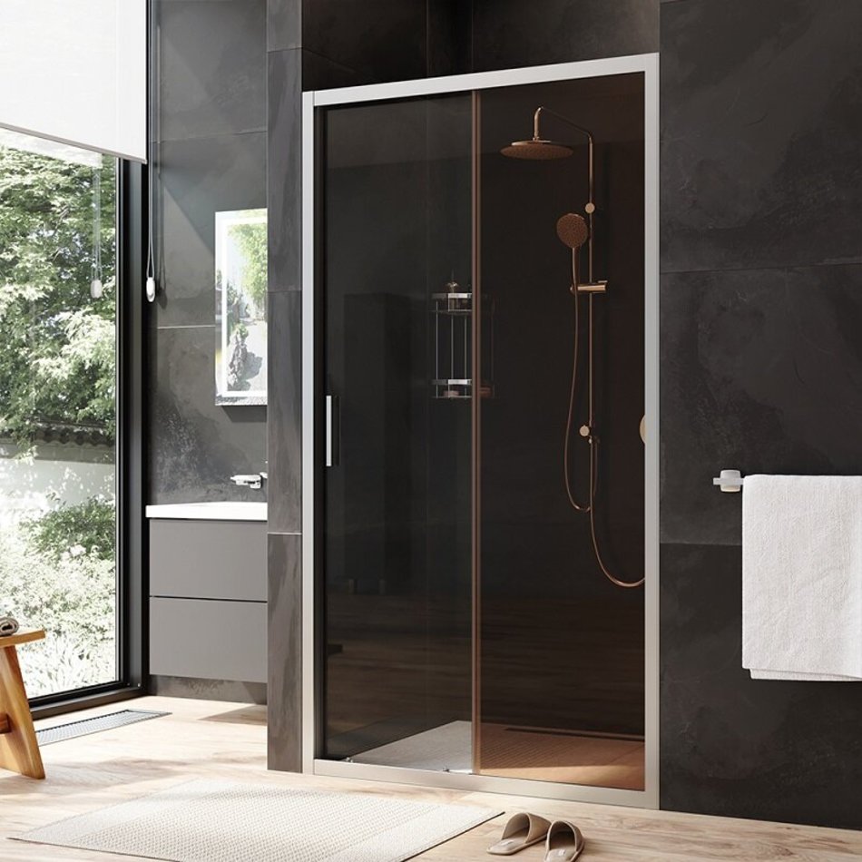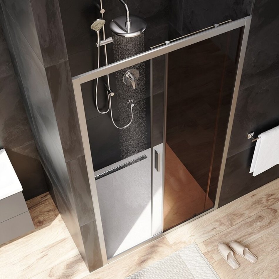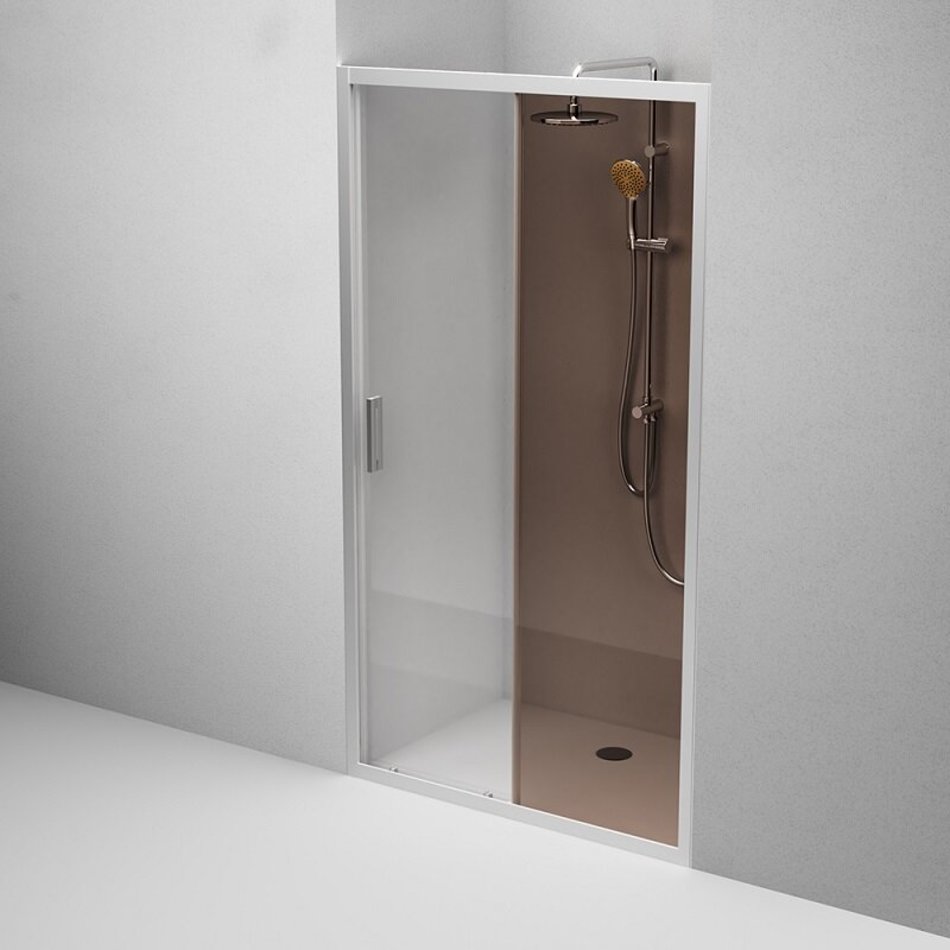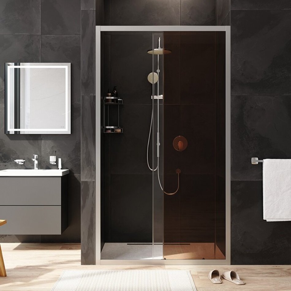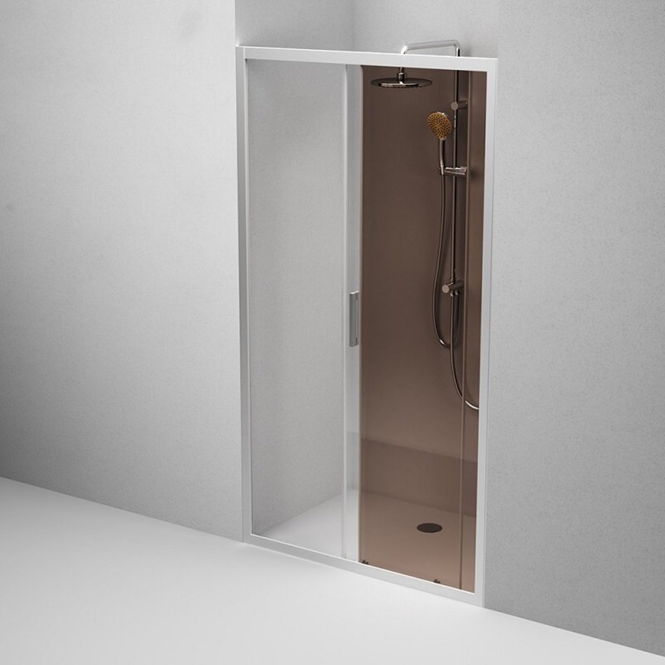 Душевая дверь в нишу Am.Pm Gem Solo 110 х 195 см, раздвижная, стёкла прозрачное и бронзовое, профиль матовый хром, W90G-110-1-195MBr