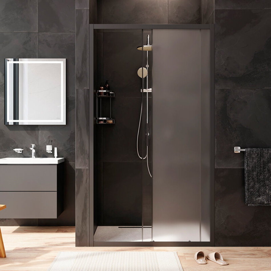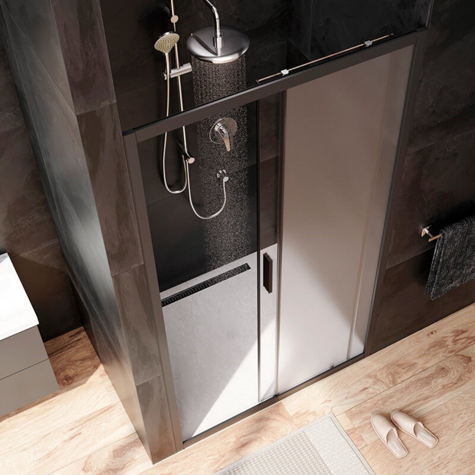 Душевая дверь в нишу Am.Pm Gem Solo 110 х 195 см, раздвижная, стёкла прозрачное и матовое, профиль черный матовый, W90G-110-1-195BM