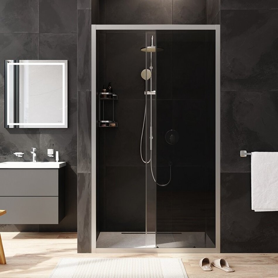 Душевая дверь в нишу Am.Pm Gem Solo 110 х 195 см, раздвижная, стёкла прозрачное и тонированное, профиль матовый хром, W90G-110-1-195MG