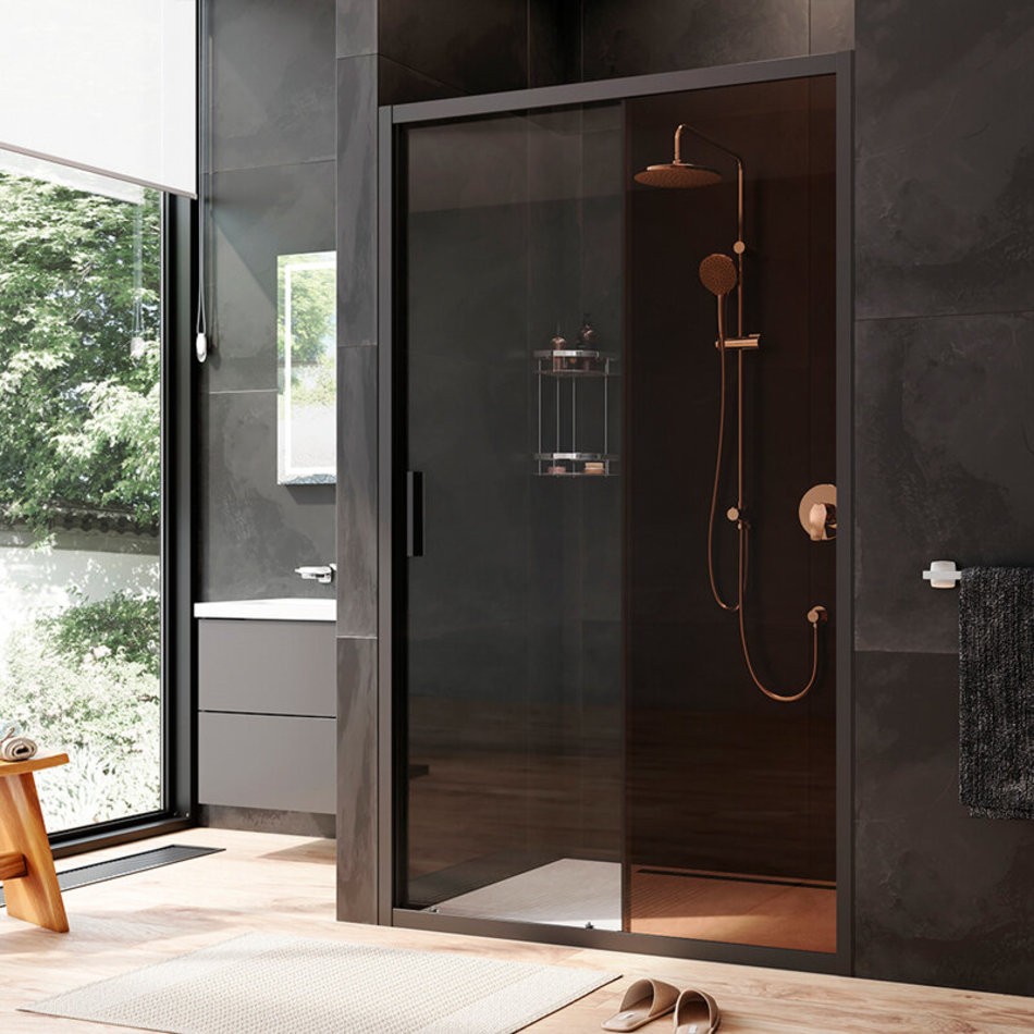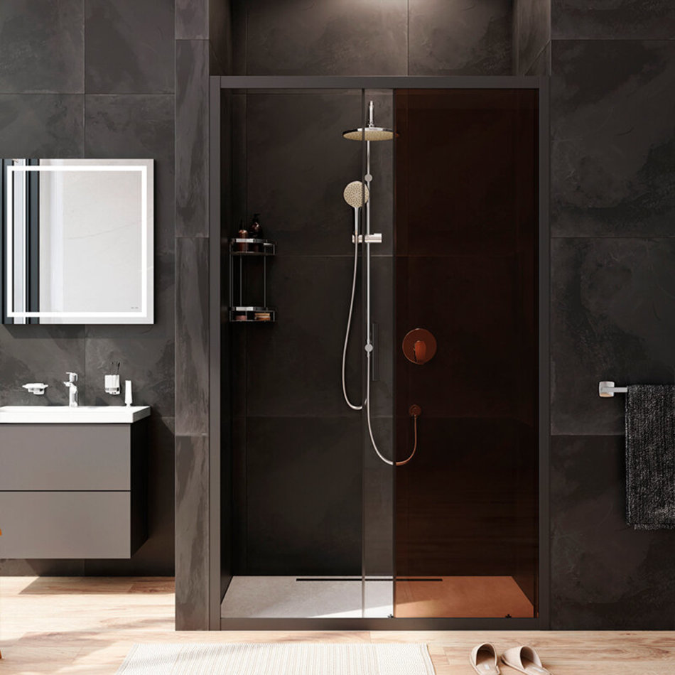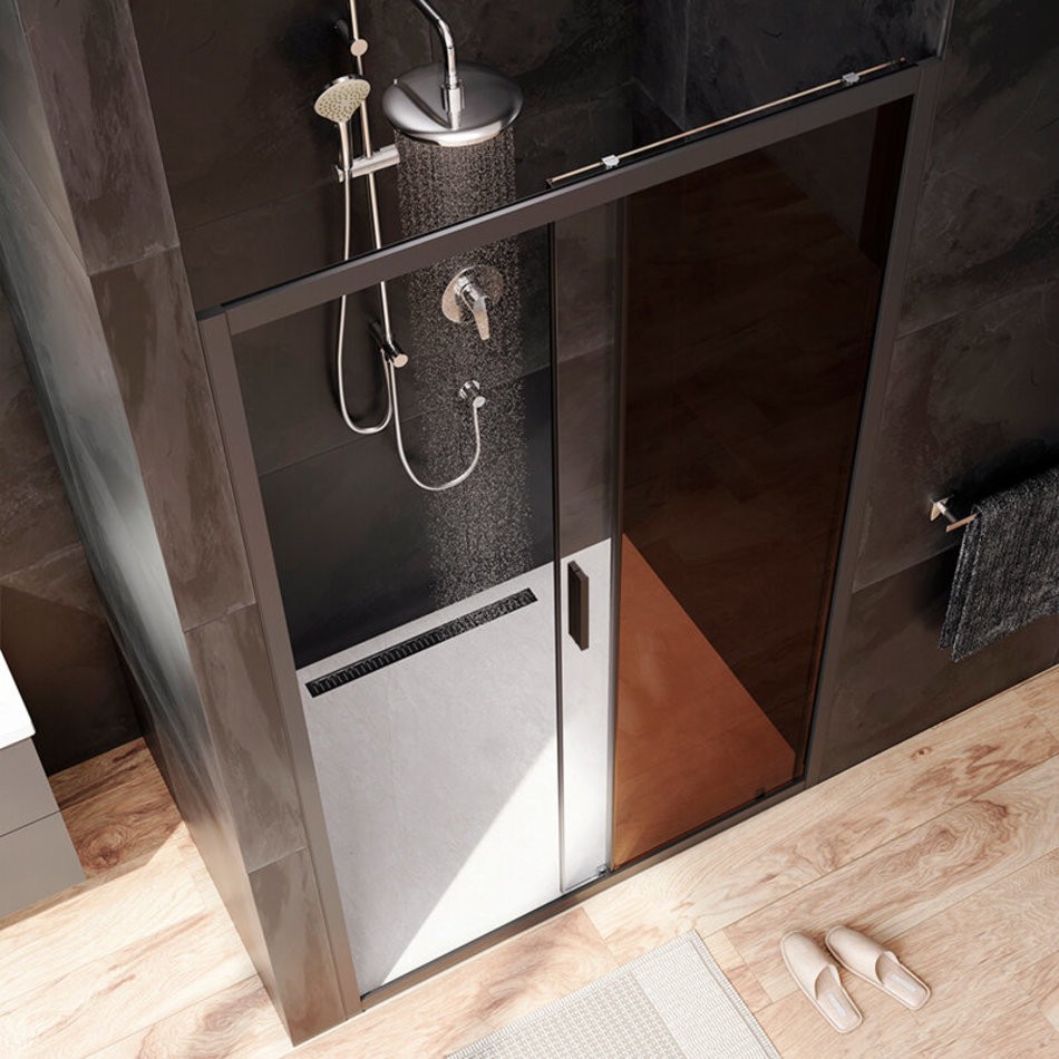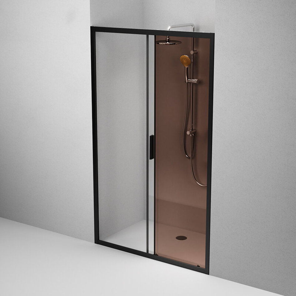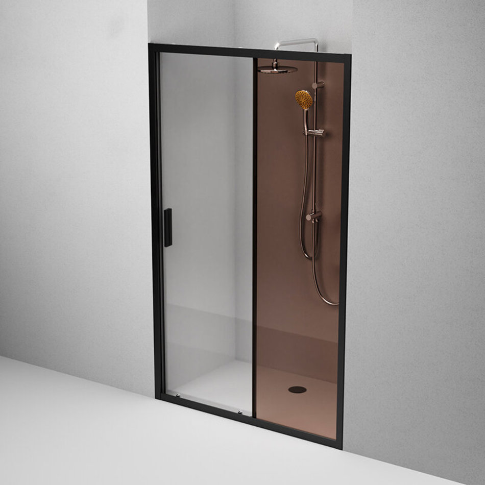 Душевая дверь в нишу Am.Pm Gem Solo 120 х 195 см, раздвижная, стёкла прозрачное и бронзовое, профиль черный матовый, W90G-120-1-195BBr