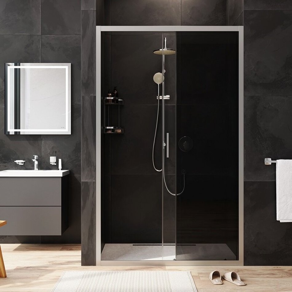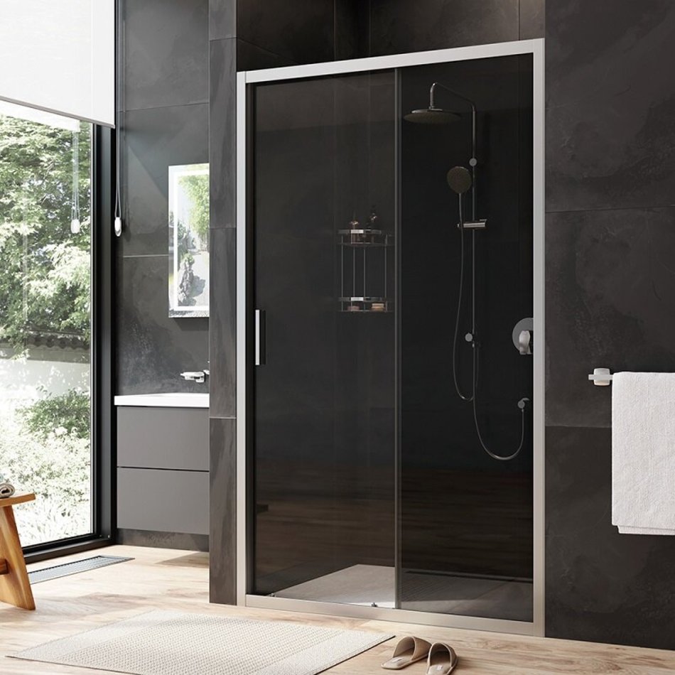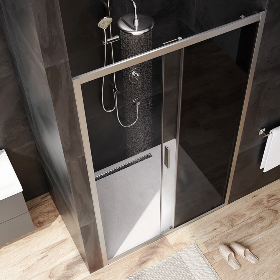 Душевая дверь в нишу Am.Pm Gem Solo 120 х 195 см, раздвижная, стёкла прозрачное и тонированное, профиль матовый хром, W90G-120-1-195MG