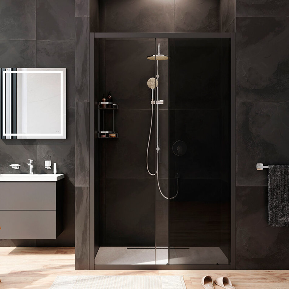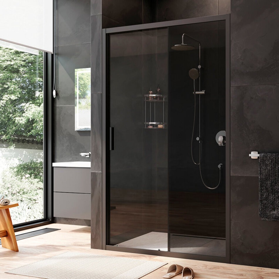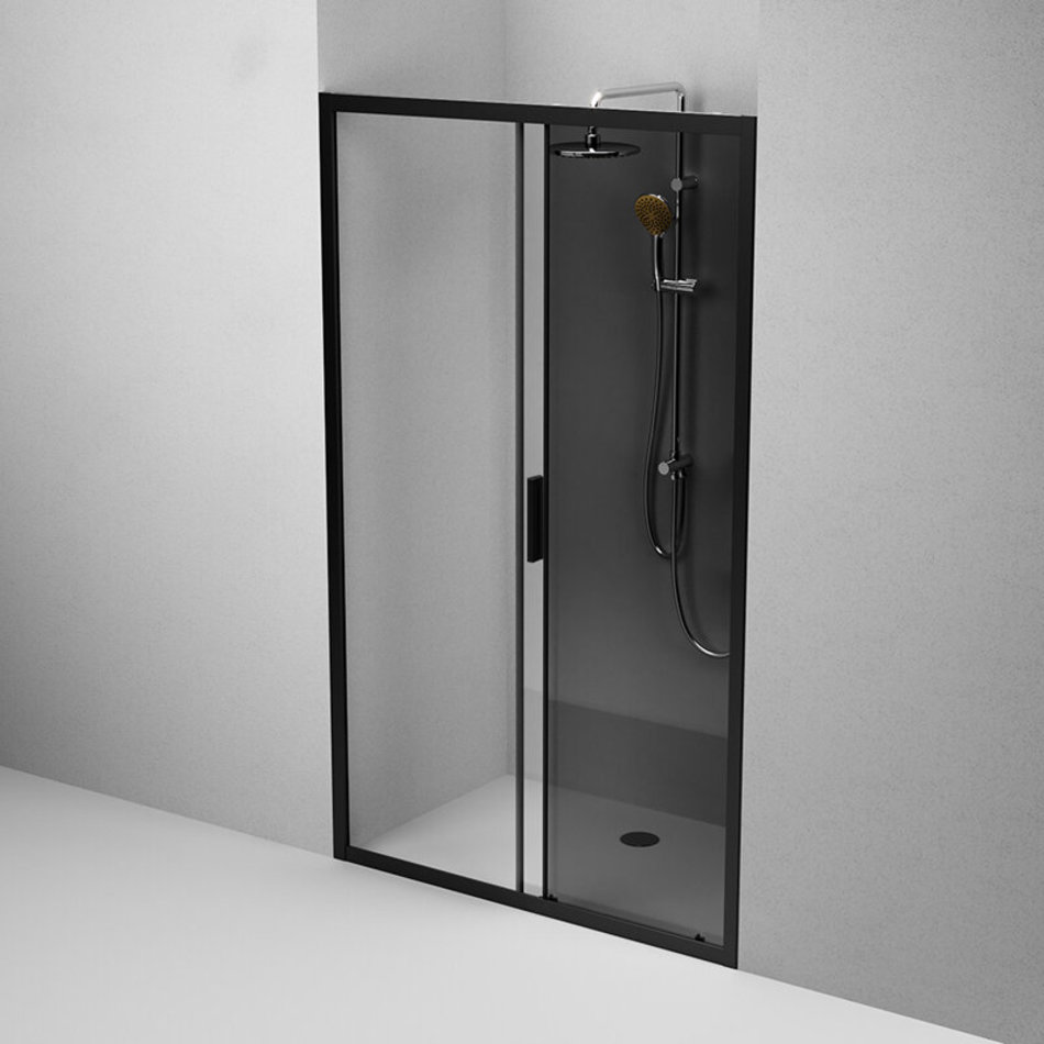 Душевая дверь в нишу Am.Pm Gem Solo 120 х 195 см, раздвижная, стёкла прозрачное и тонированное, профиль черный матовый, W90G-120-1-195BG