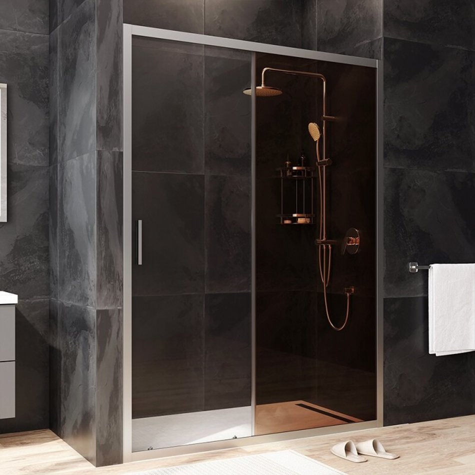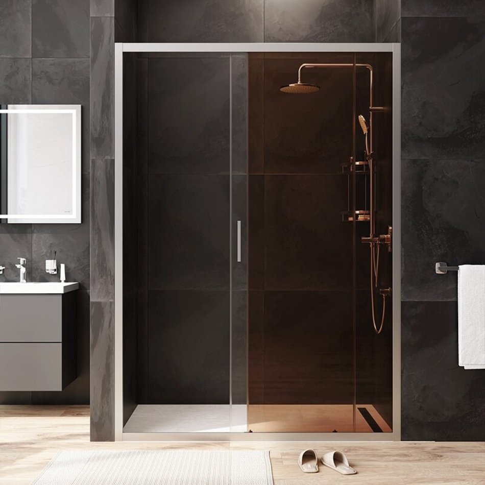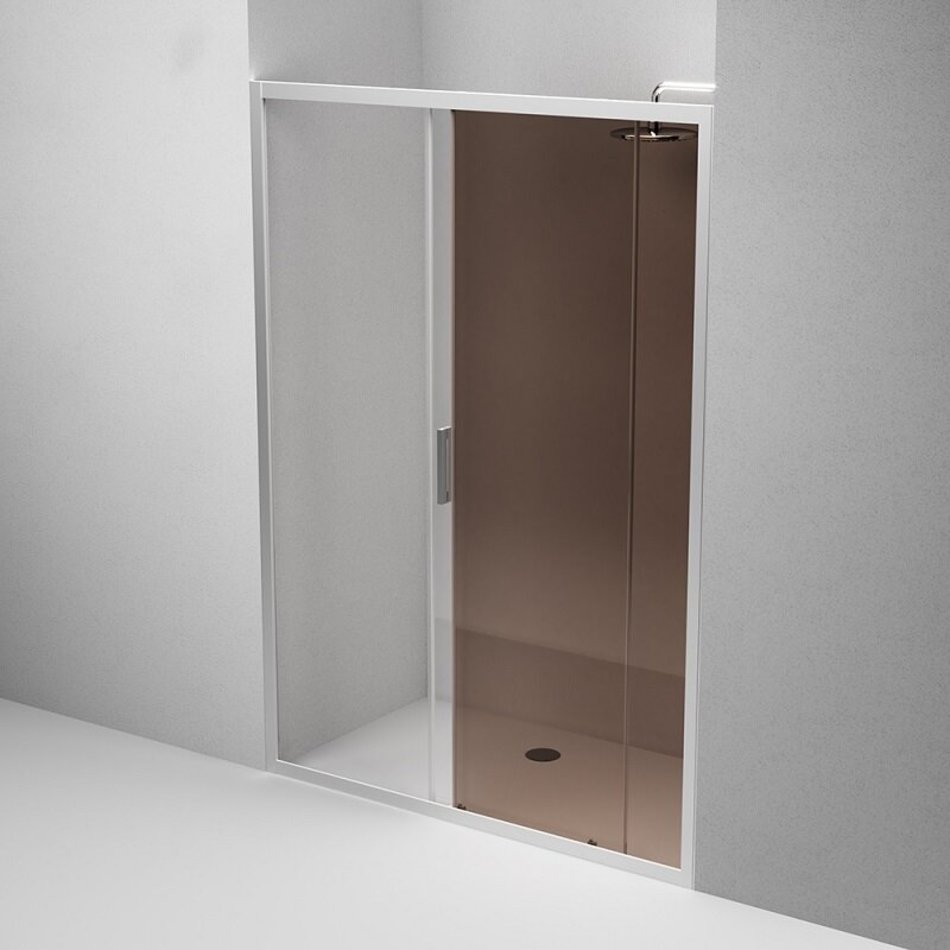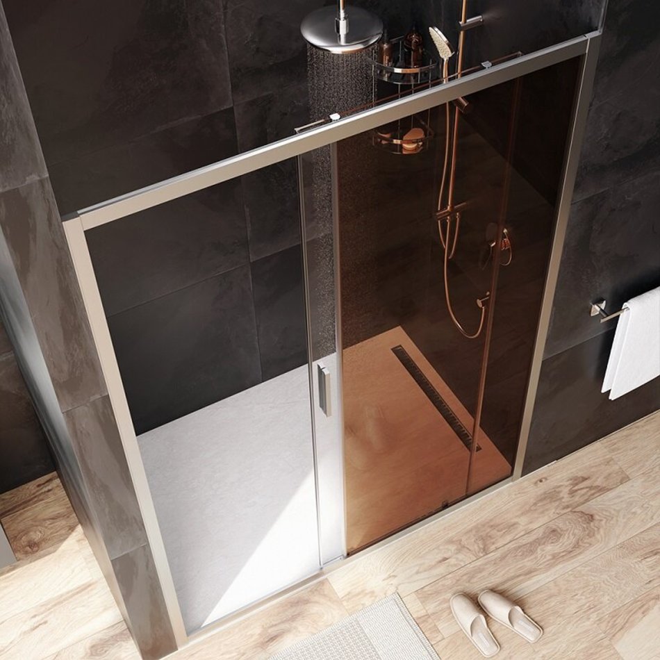 Душевая дверь в нишу Am.Pm Gem Solo 140 х 195 см, раздвижная, стёкла прозрачное и бронзовое, профиль матовый хром, W90G-140-1-195MBr