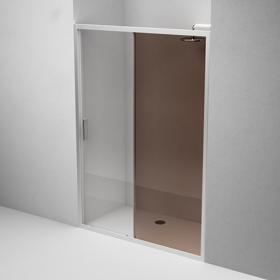 - Стёкла: стекло двери прозрачное, неподвижная часть - бронзовое.