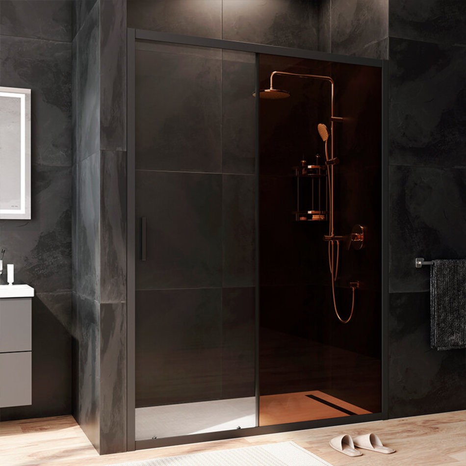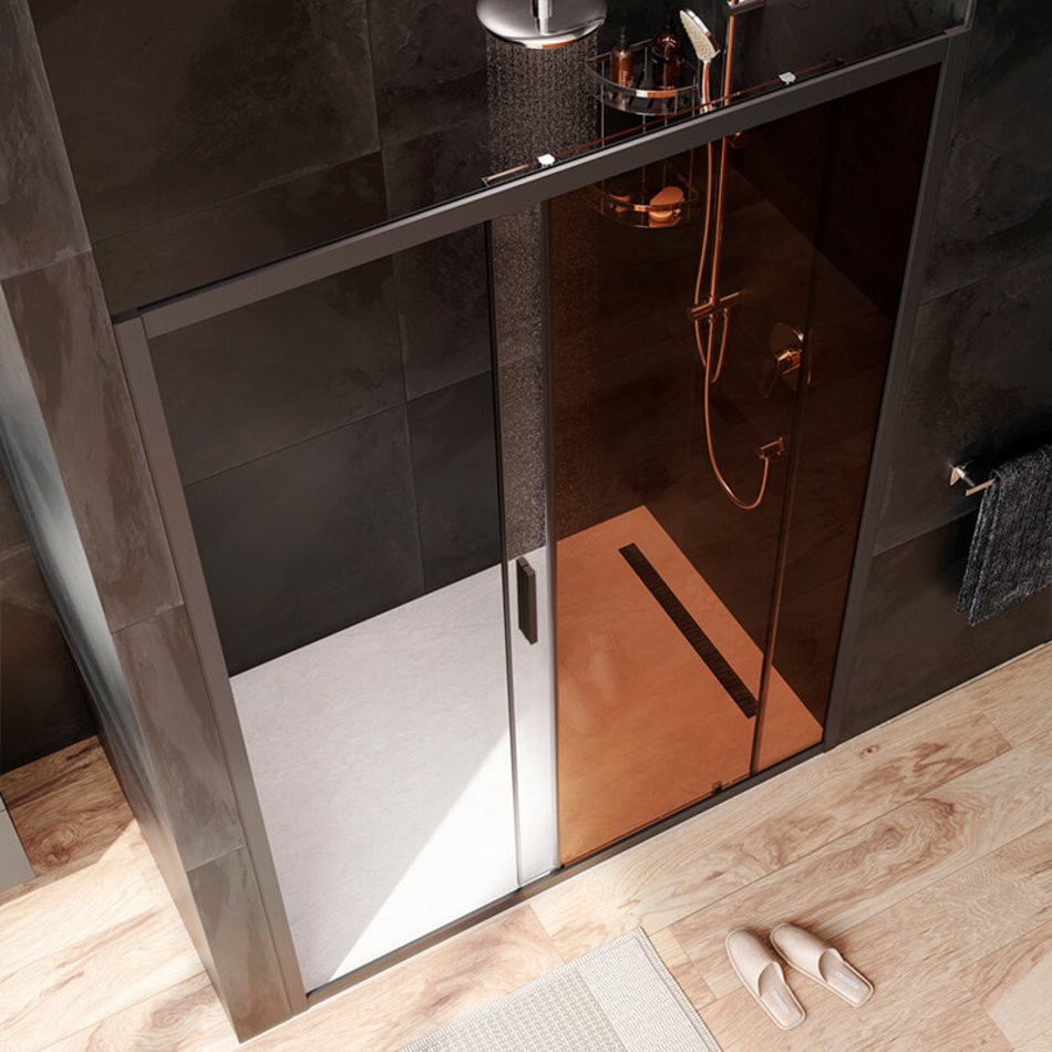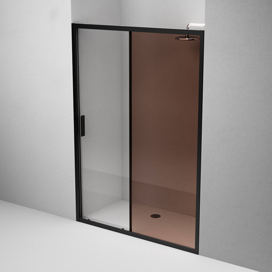 Душевая дверь в нишу Am.Pm Gem Solo 140 х 195 см, раздвижная, стёкла прозрачное и бронзовое, профиль черный матовый, W90G-140-1-195BBr
