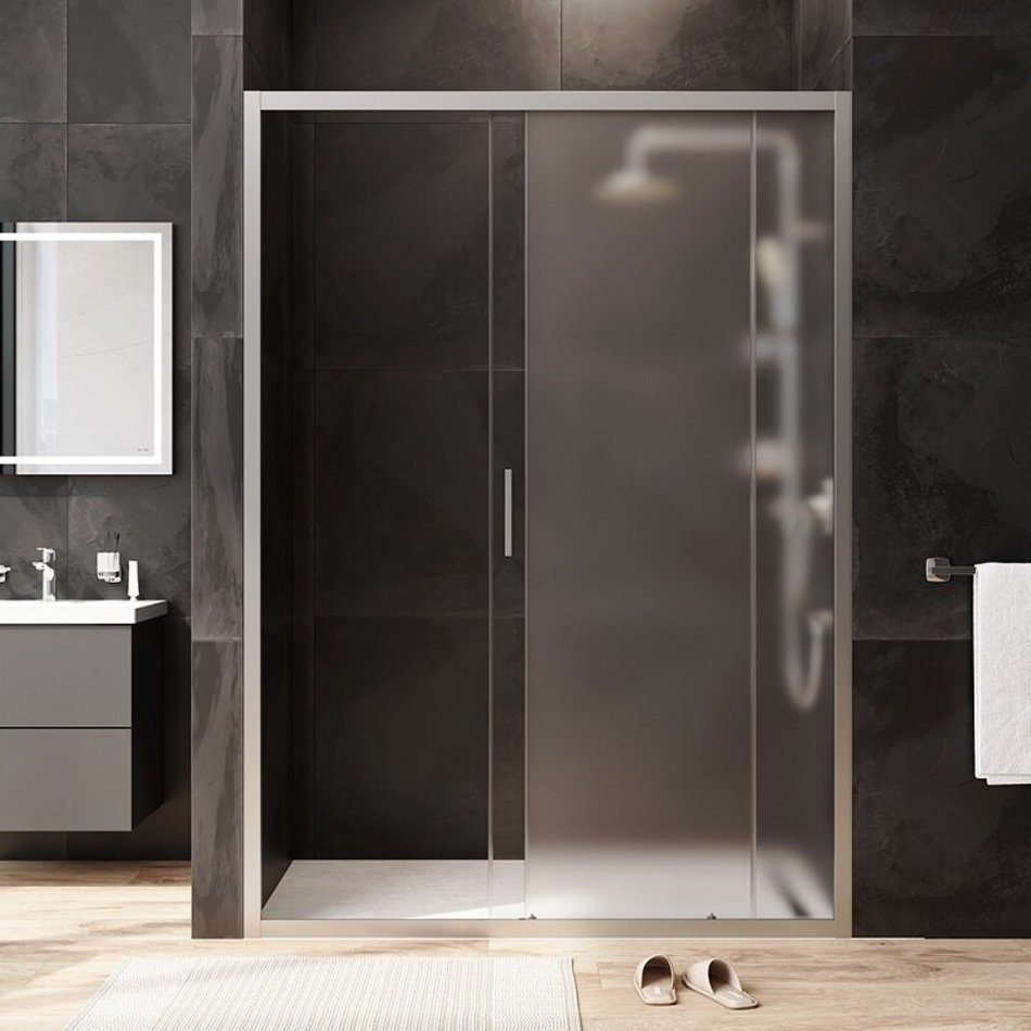 Душевая дверь в нишу Am.Pm Gem Solo 140 х 195 см, раздвижная, стёкла прозрачное и матовое, профиль матовый хром, W90G-140-1-195MM