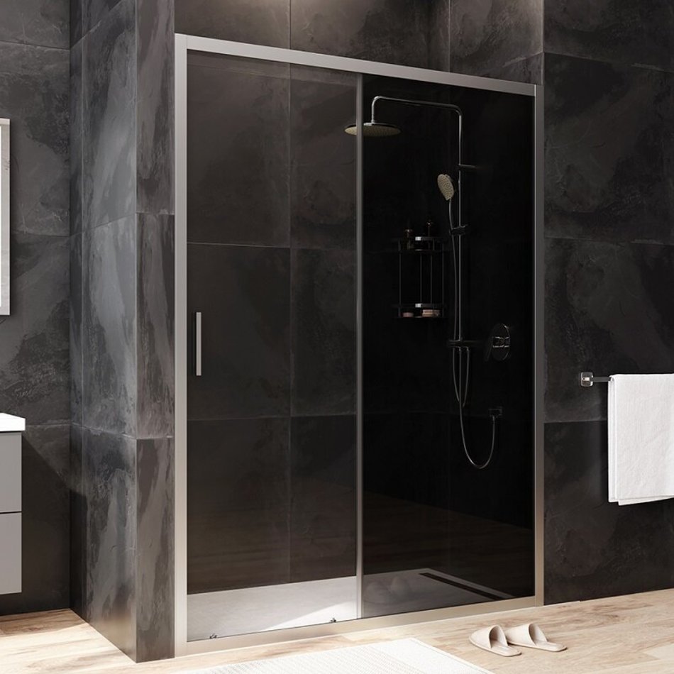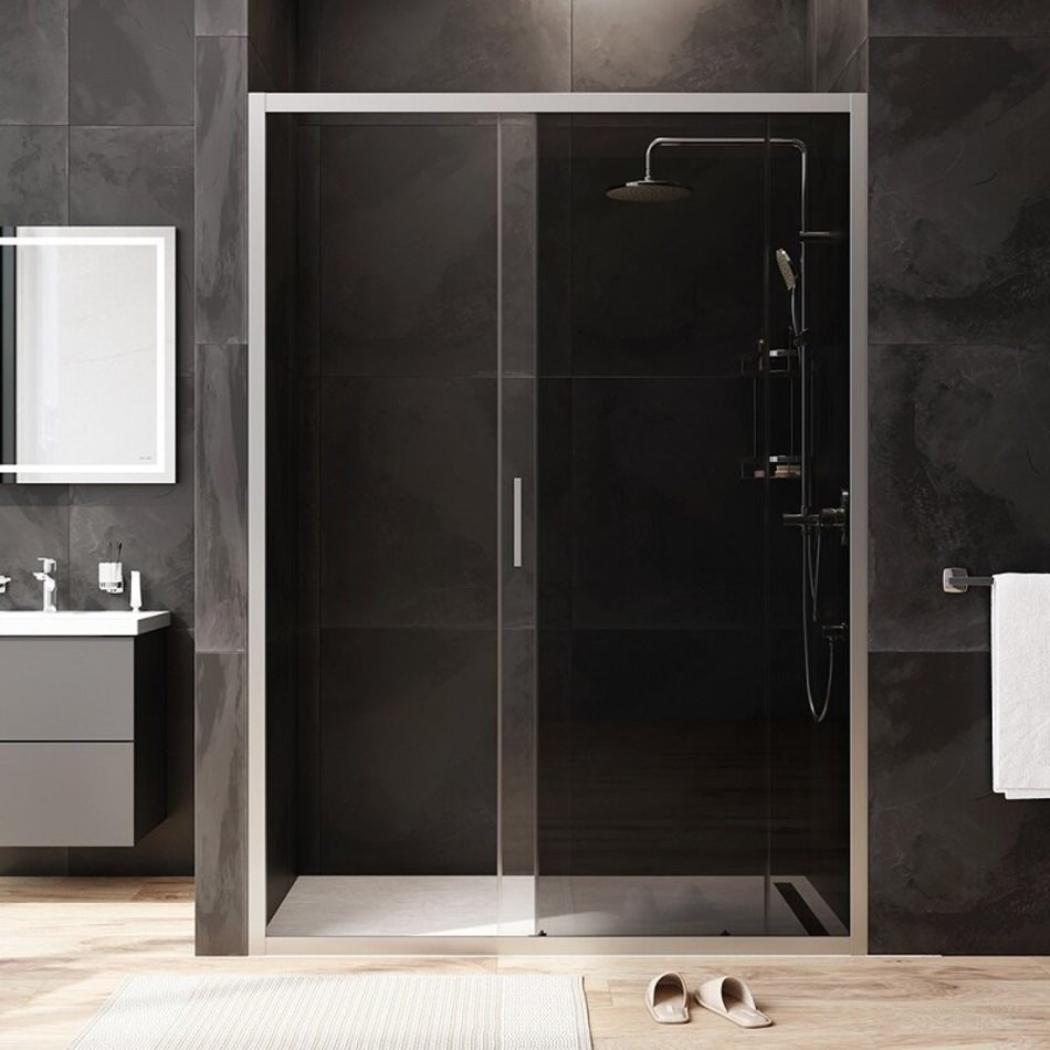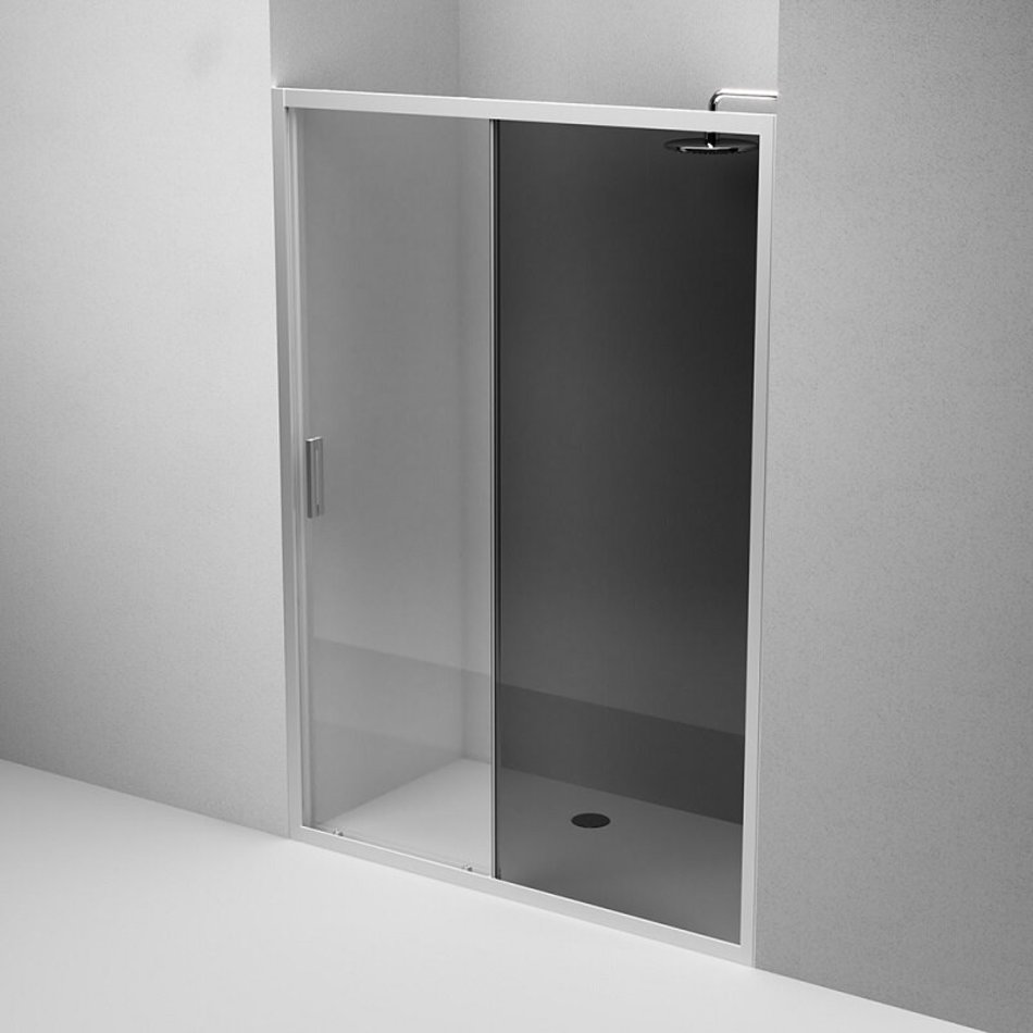 Душевая дверь в нишу Am.Pm Gem Solo 140 х 195 см, раздвижная, стёкла прозрачное и тонированное, профиль матовый хром, W90G-140-1-195MG