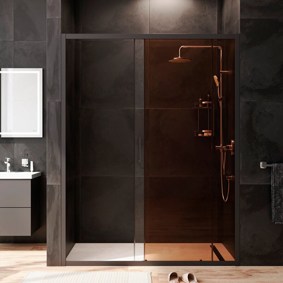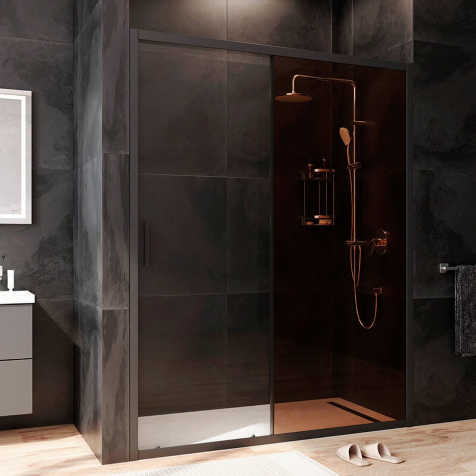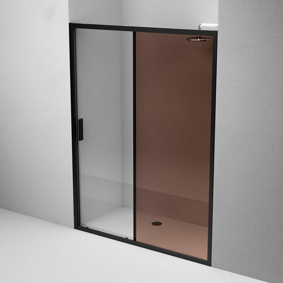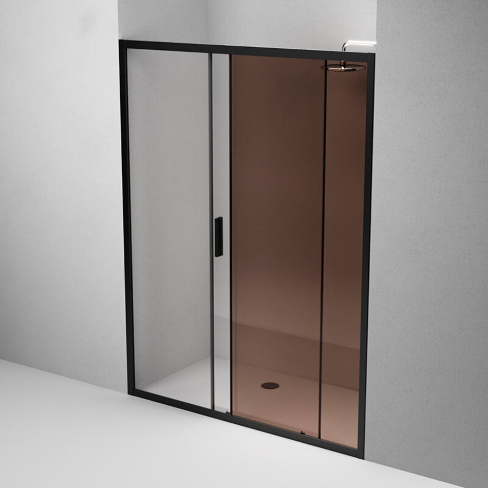 Душевая дверь в нишу Am.Pm Gem Solo 150 х 195 см, раздвижная, стёкла прозрачное и бронзовое, профиль черный матовый, W90G-150-1-195BBr