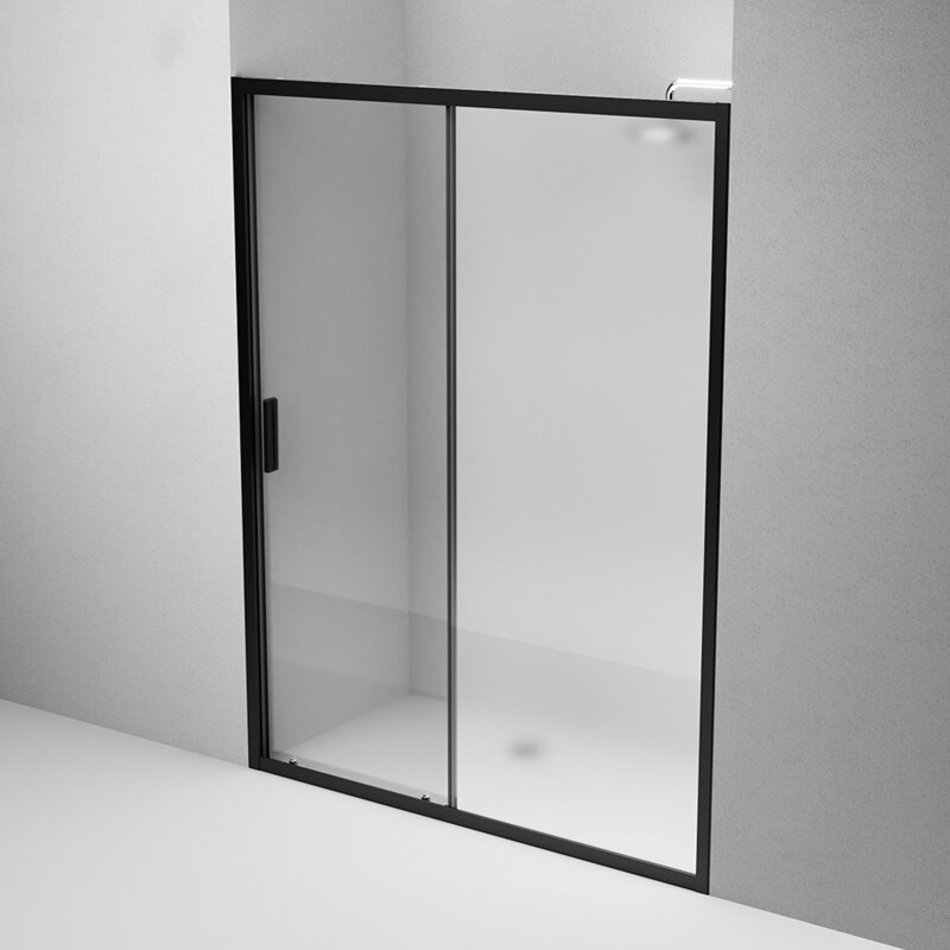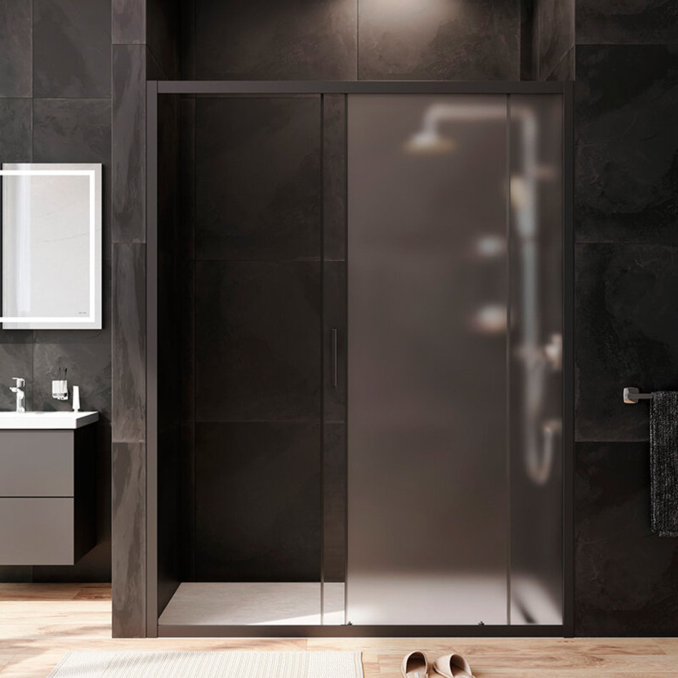 Душевая дверь в нишу Am.Pm Gem Solo 150 х 195 см, раздвижная, стёкла прозрачное и матовое, профиль черный матовый, W90G-150-1-195BM