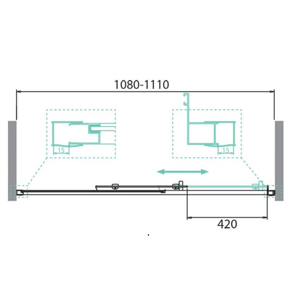 Душевая дверь в нишу BelBagno Due, 110 х 190 см, стекло прозрачное, профиль хром, DUE-BF-1-110-C-Cr