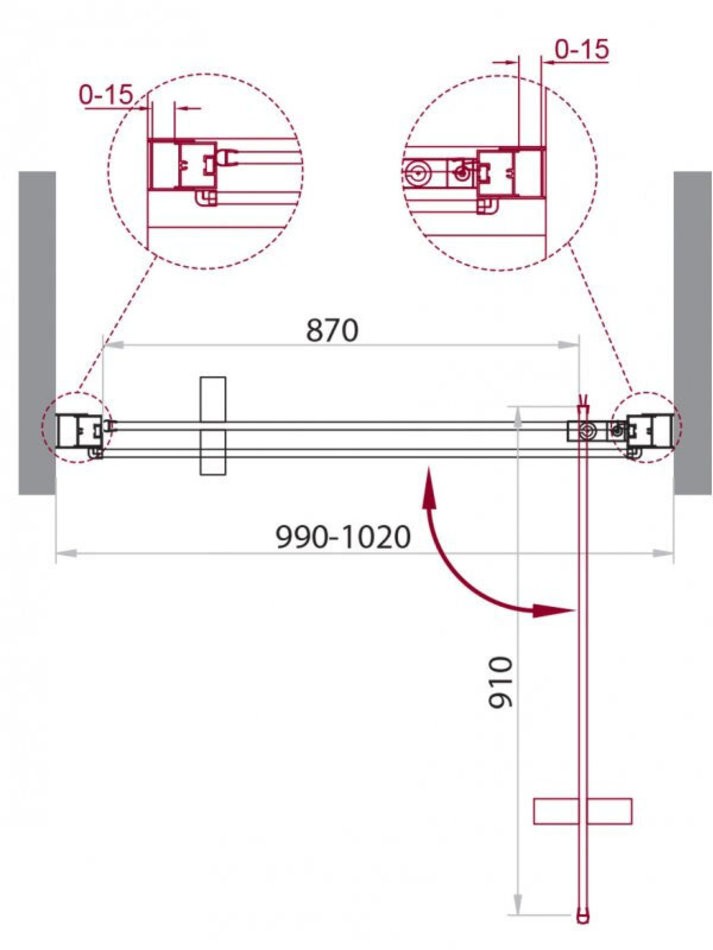 Душевая дверь в нишу BelBagno Marmi, 100 х 195 см, стекло прозрачное, профиль хром, MARMI-B-1-100-C-Cr