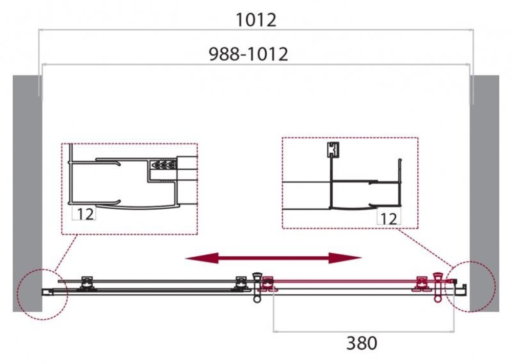 - Габариты с регулировками: (988-1012) мм
