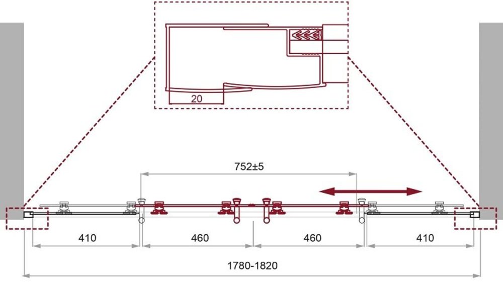 Душевая дверь в нишу BelBagno UNO-195, 180 х 195 см, стекло прозрачное, профиль хром, UNO-195-BF-2-180-C-Cr