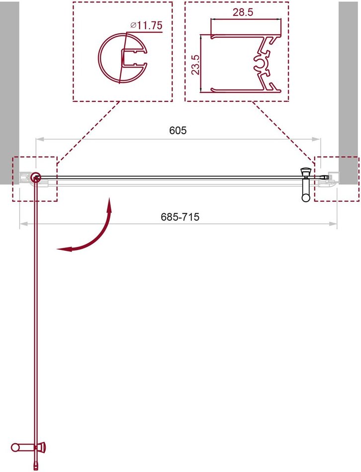 - Регулировка ширины: предусмотрена за счет боковых профилей