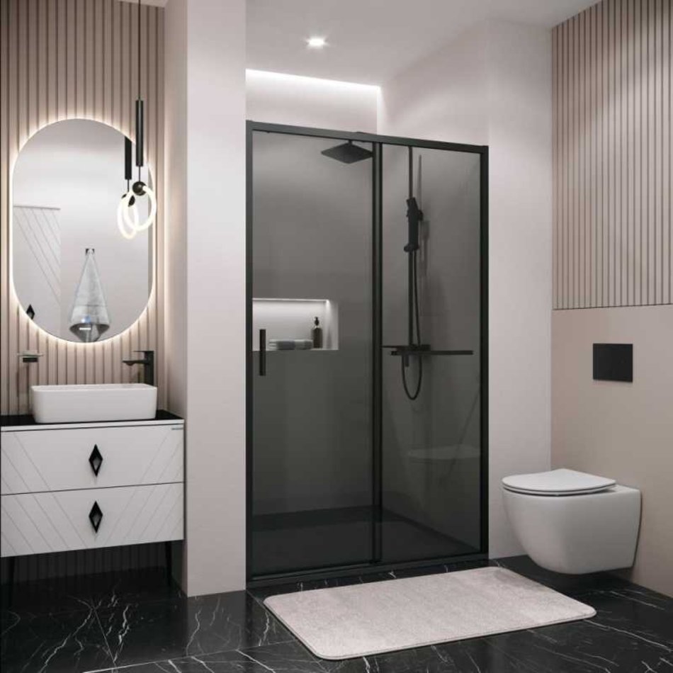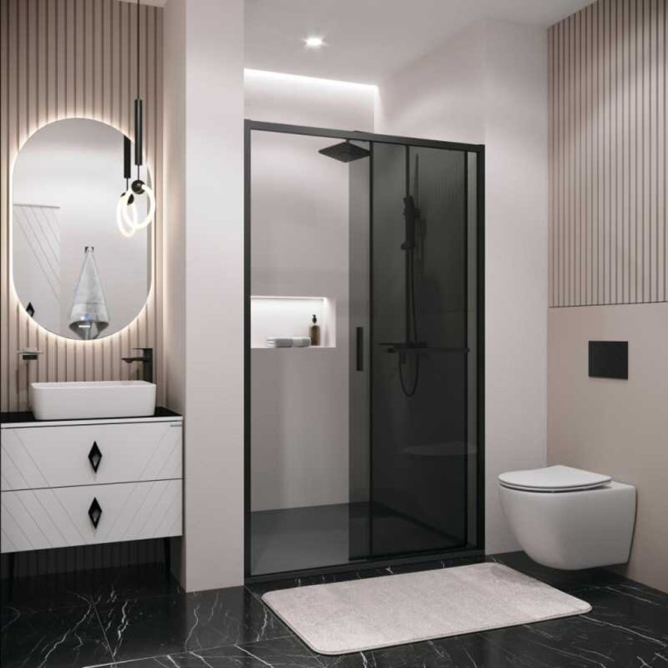 Душевая дверь в нишу Grossman Style, 110 х 195 см, стекло тонированное, профиль черный матовый, 100.K33.05.110.21.10