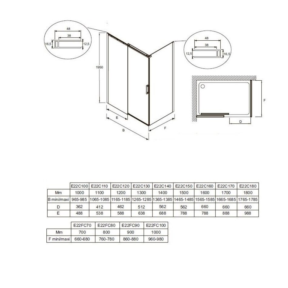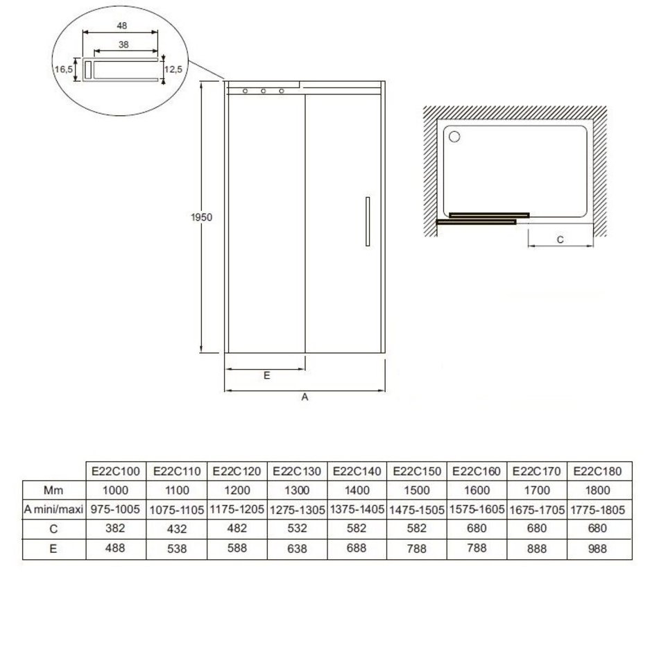 - Мин./макс. ширина двери с фиксированной панелью: 1775 - 1805 мм