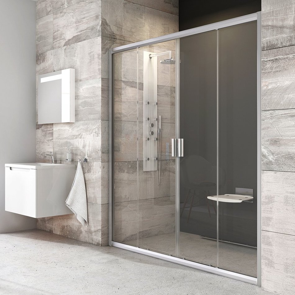 Устанавливается в облицованную кафелем нишу ванной комнаты или в угол в комбинации с неподвижной стенкой BLPS на поддоны RAVAK PERSEUS, PERSEUS PRO, PERSEUS PRO FLAT, PERSEUS PRO CHROME, GIGANT PRO, GIGANT PRO FLAT, GIGANT PRO CHROME или непосредственно на пол со встроенным душевым каналом. Для размеров 130 см и больше возможна установка только на душевой канал. Комбинация с двумя неподвижными стенками BLPS позволяет создать „П“-образный душевой уголок.