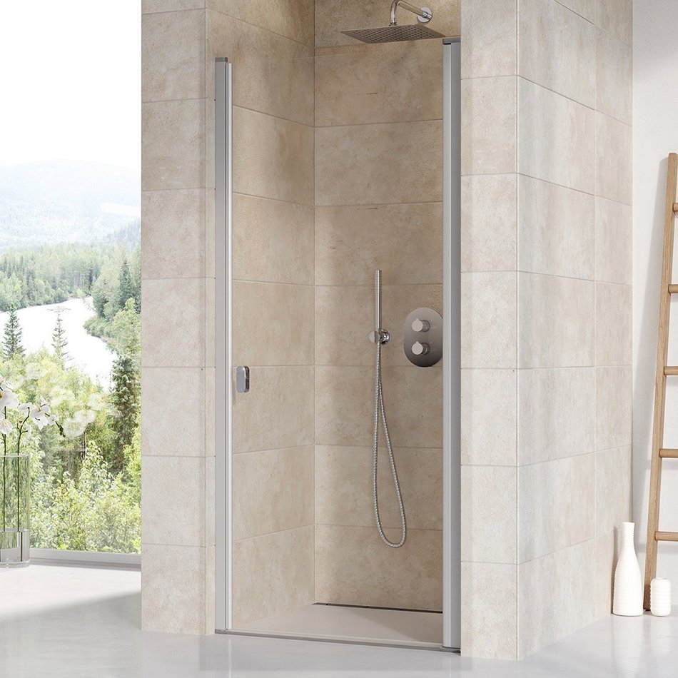 Идеальное решение для создания душевого пространства в нише шириной 80 - 90 см. Для лучшего проветривания двери открываются вовнутрь и наружу, обеспечивая удобный вход и отсутствие неприятных капель воды на полу.