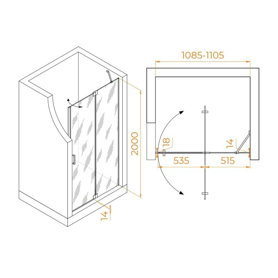 Душевая дверь в нишу RGW Hotel HO-014B 350601411-14, 110 см, стекло прозрачное, профиль черный