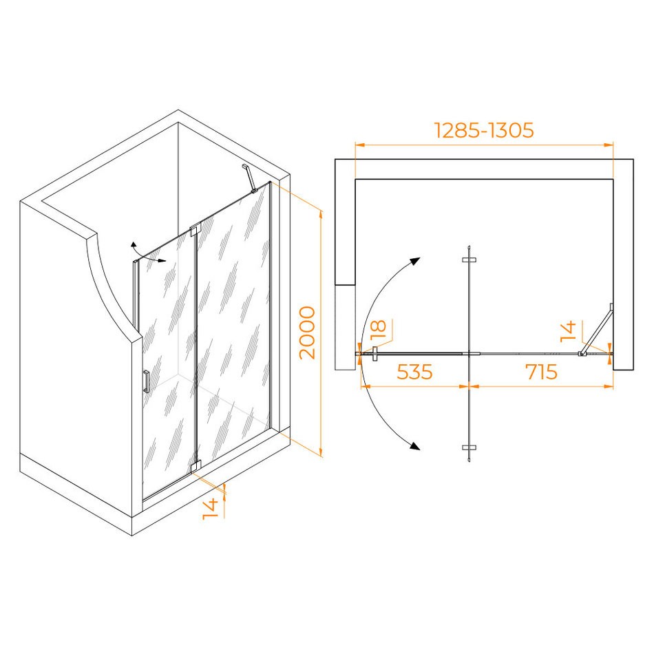 Душевая дверь в нишу RGW Hotel HO-014B 350601413-14, 130 см, стекло прозрачное, профиль черный