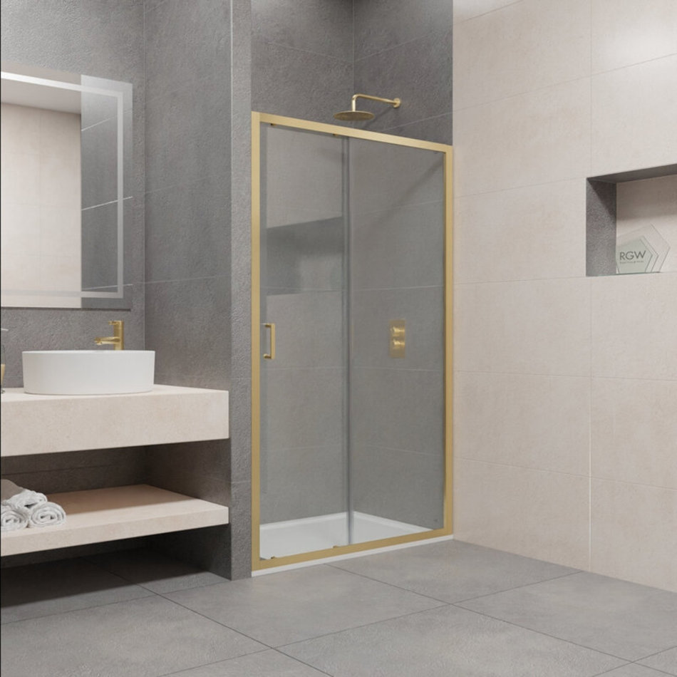 Душевая дверь в нишу RGW PA-14G, 140 х 195 см, стекло прозрачное, профиль золото, 41081414-16
