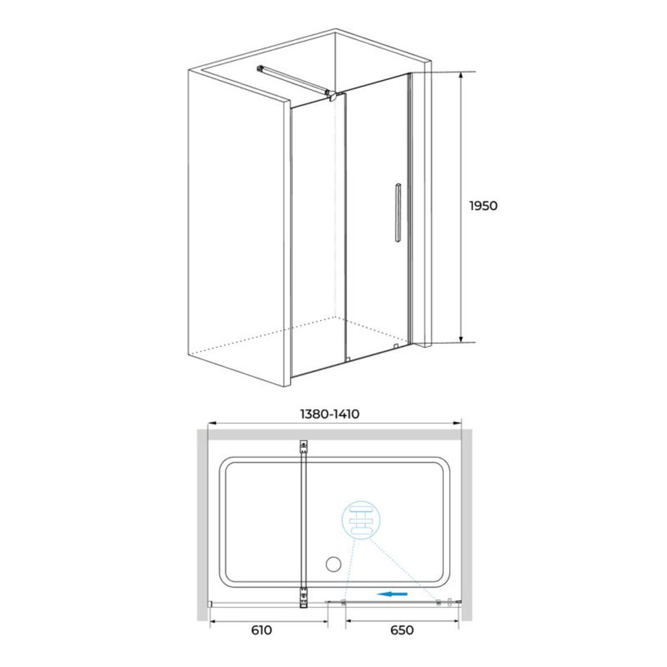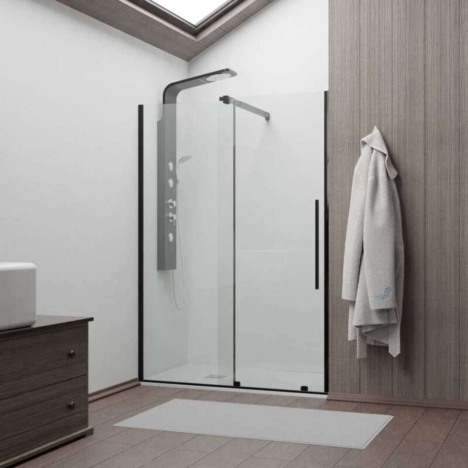 - Душевая дверь одностворчатая с неподвижным элементом