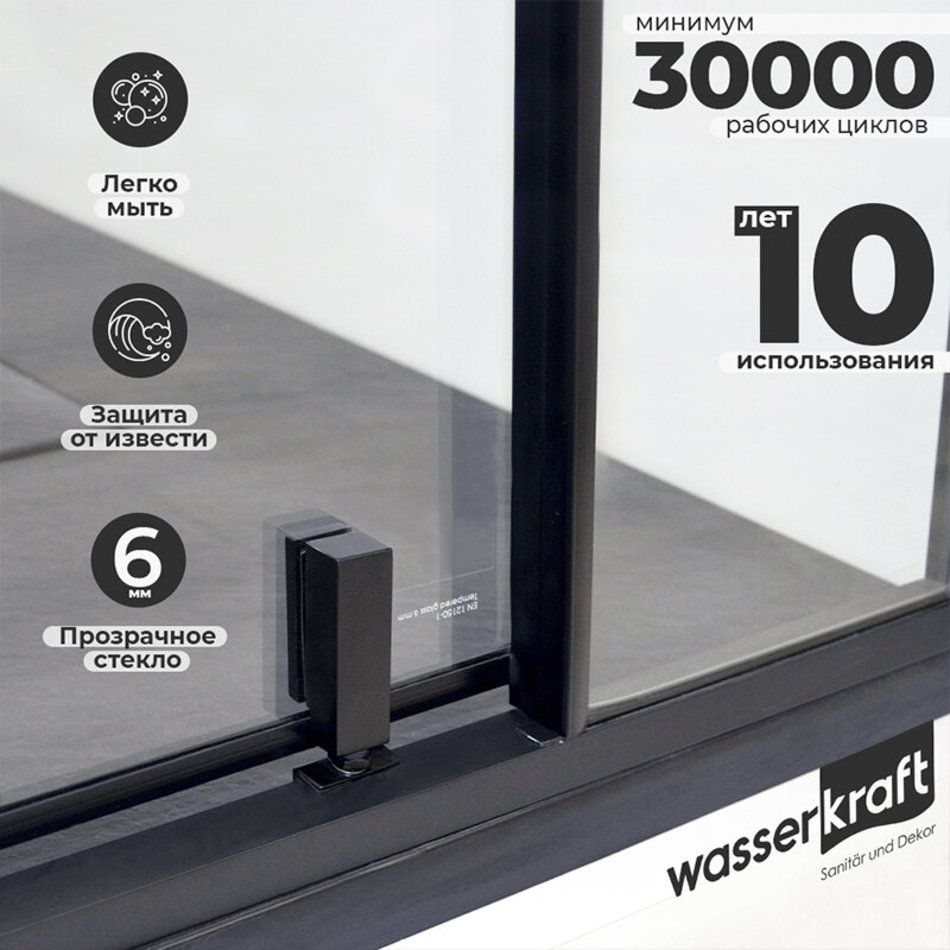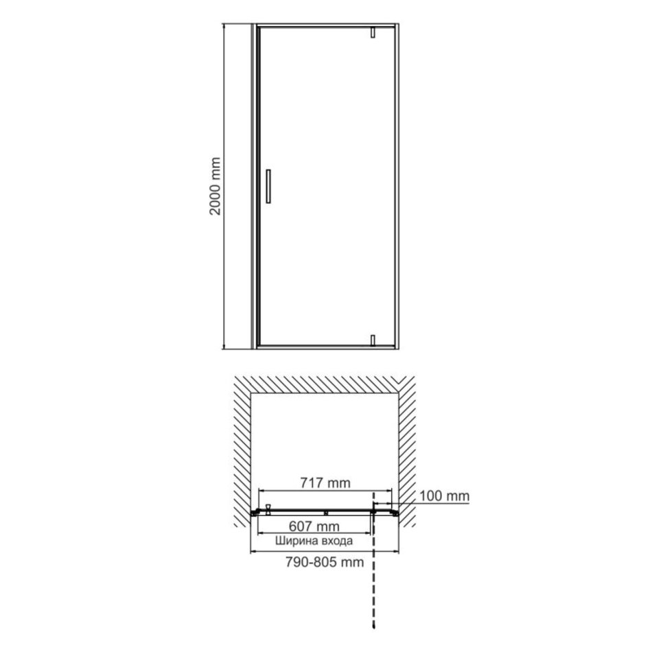 Душевая дверь в нишу WasserKRAFT Elbe, универсальная, 80 х 200 см, профиль черный, стекло прозрачное, 74P27