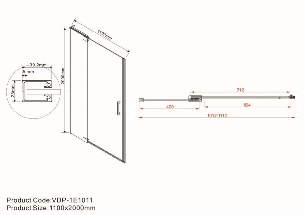 Душевая дверь Vincea Extra VDP-1E, 100/110 см, распашная, стекло тонированное, профиль черный, VDP-1E1011CGB