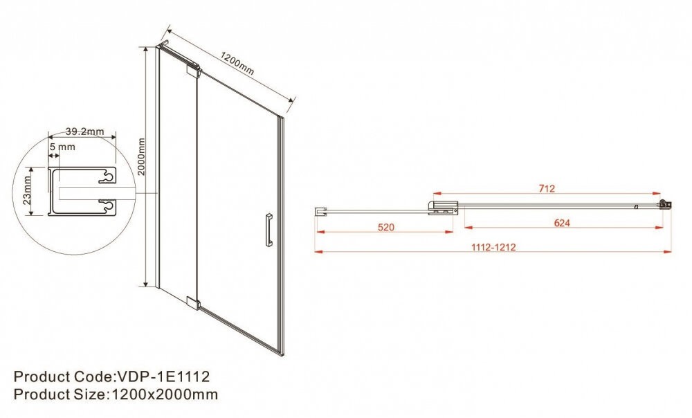 Душевая дверь Vincea Extra VDP-1E 110/120 см распашная, стекло прозрачное, профиль черный, VDP-1E1112CLB