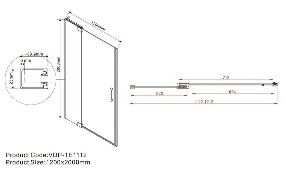 Душевая дверь Vincea Extra VDP-1E 110/120 см распашная, стекло тонированное, профиль черный, VDP-1E1112CGB