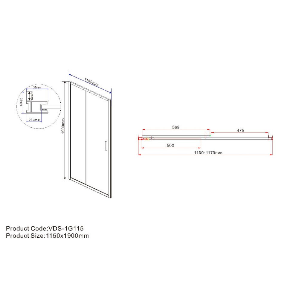Душевая дверь Vincea Garda VDS-1G115CLG, 115 см, стекло прозрачное, профиль брашированное золото